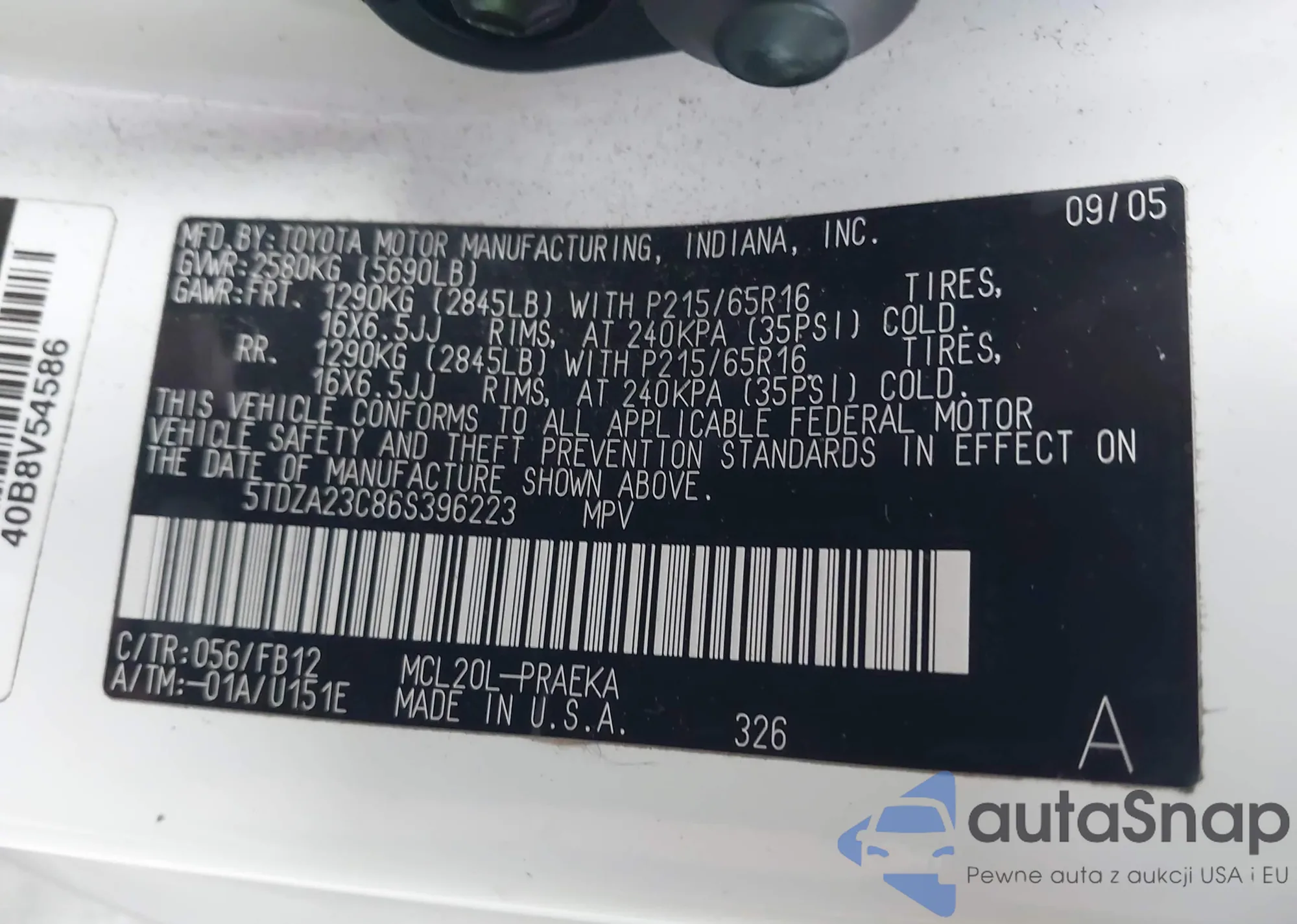 VIN: 5TDZA23C86S396223