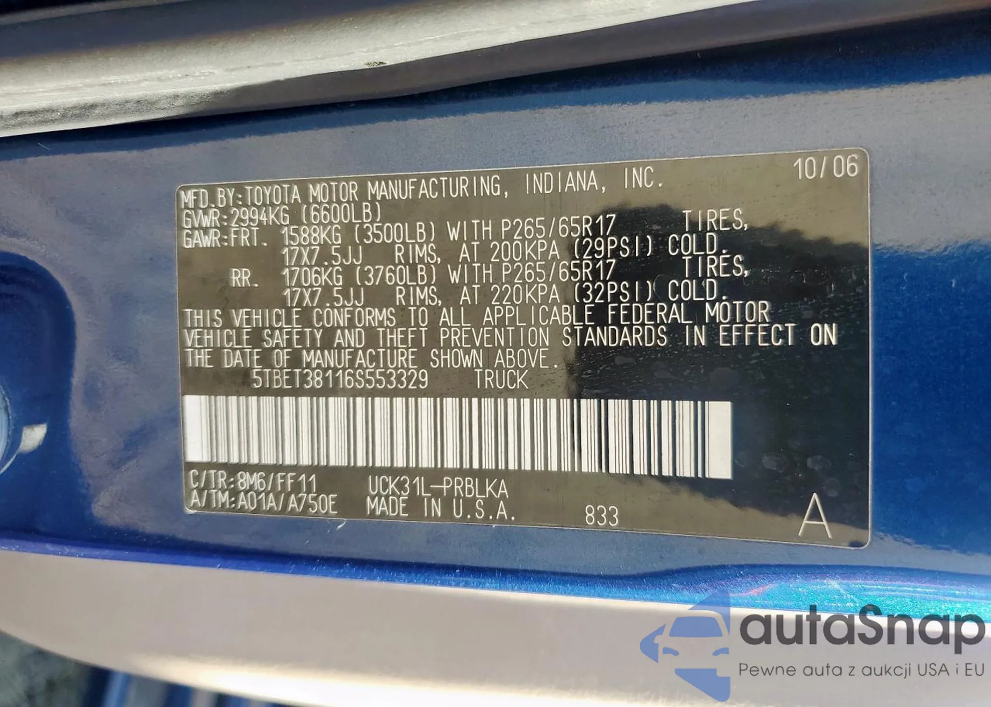 VIN: 5TBET38116S553329