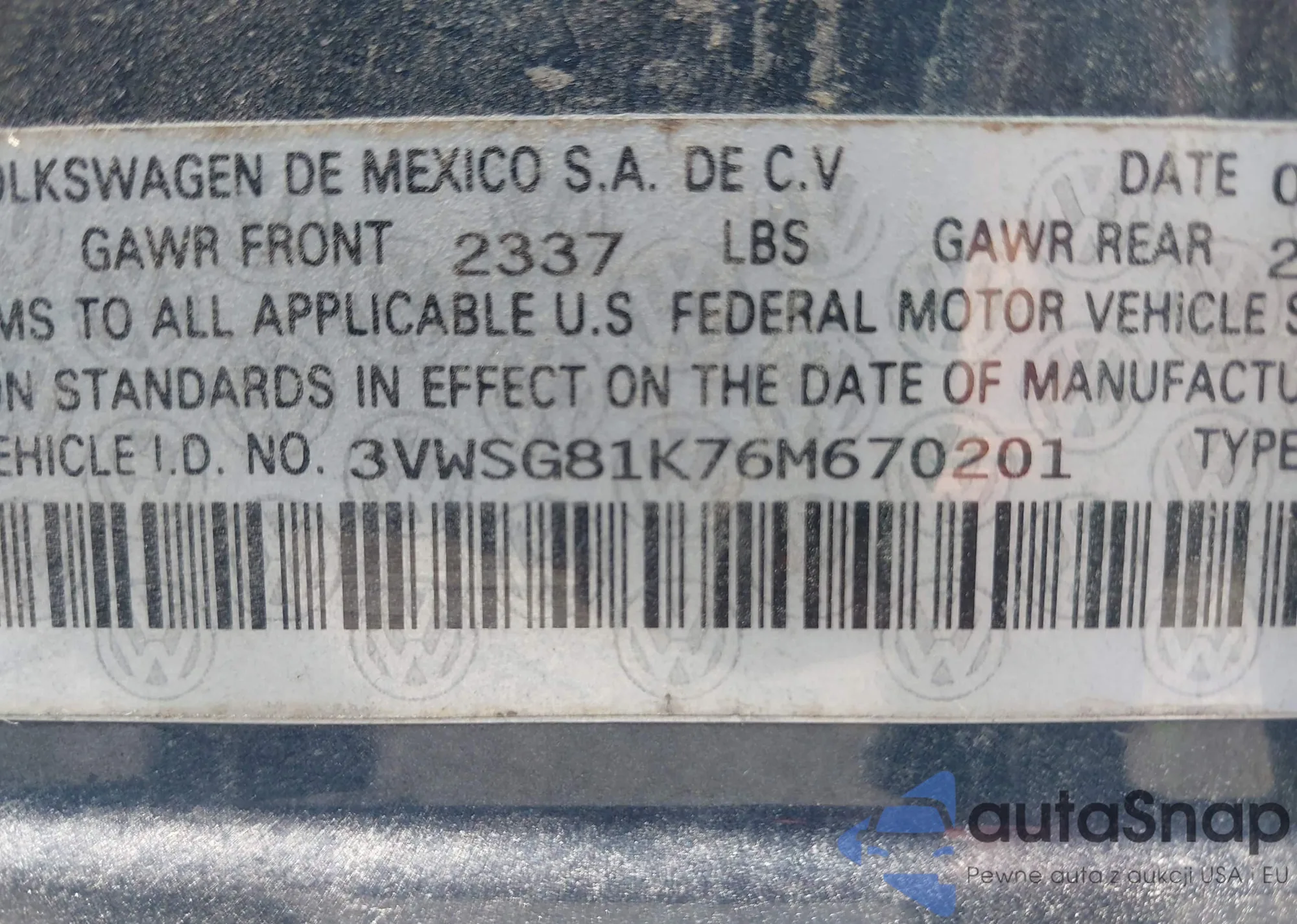 VIN: 3VWSG81K76M670201