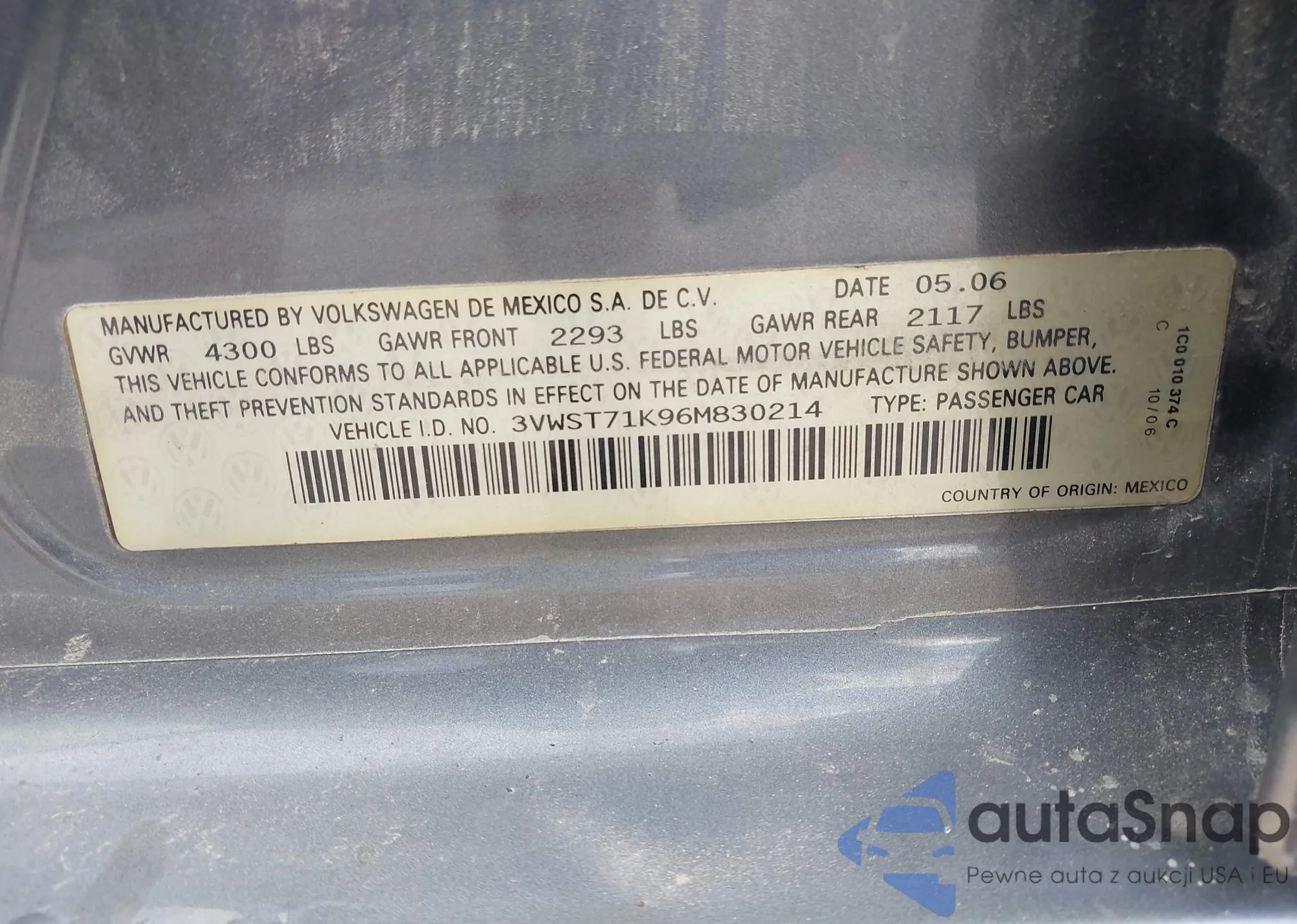 VIN: 3VWST71K96M830214