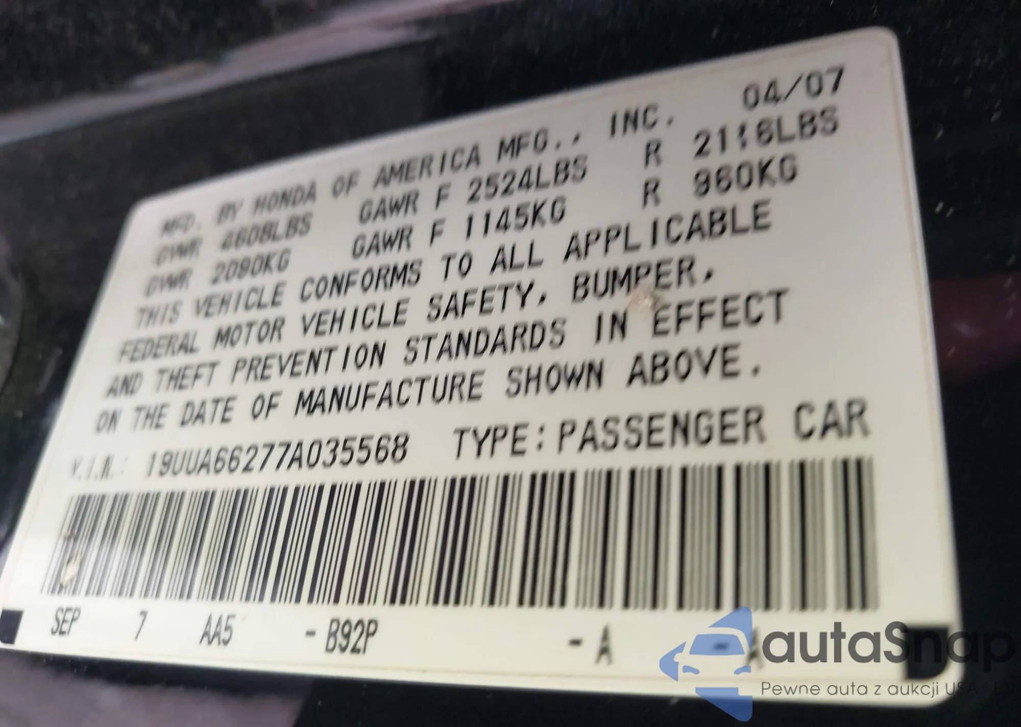 VIN: 19UUA66277A035568