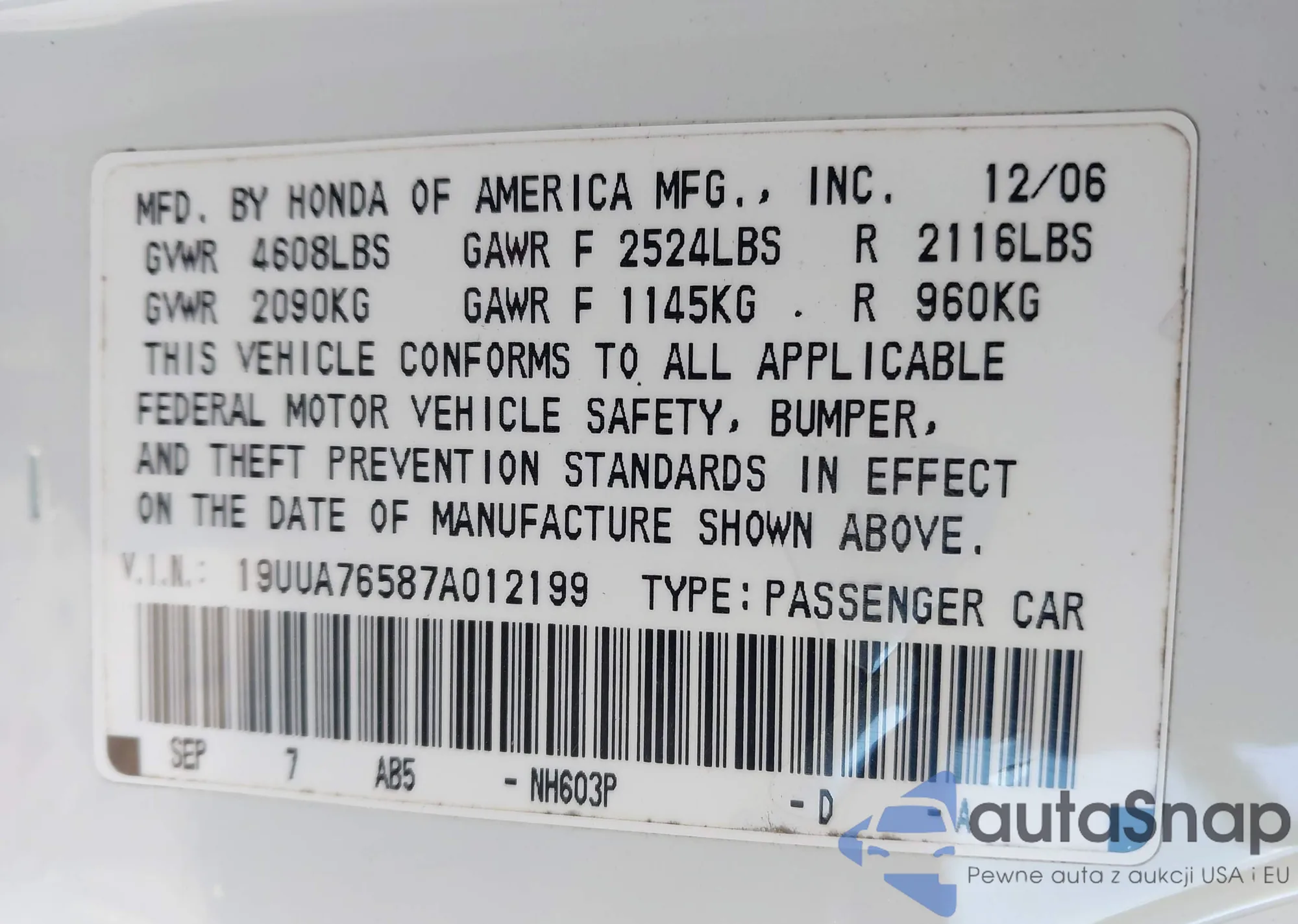 Samochód Acura TL 2007 (VIN 19UUA76587A012199) nie był wcześniej licytowany. Dokumenty są czyste, przebieg odpowiada lub jest niższy niż średnia rynku. Sprzedaje go firma ubezpieczeniowa – polecamy zakup. Dostawa do portu zajmie ok. 6–8 tygodni.