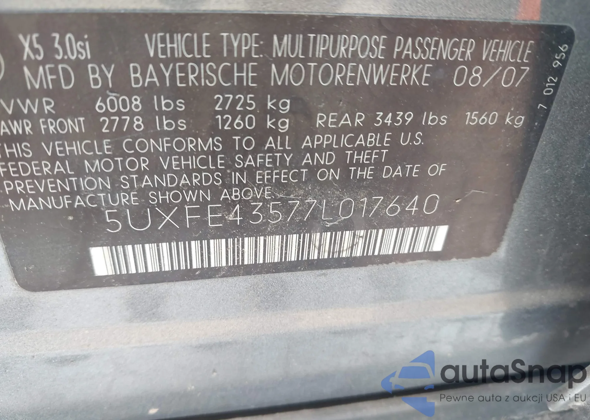 VIN: 5UXFE43577L017640