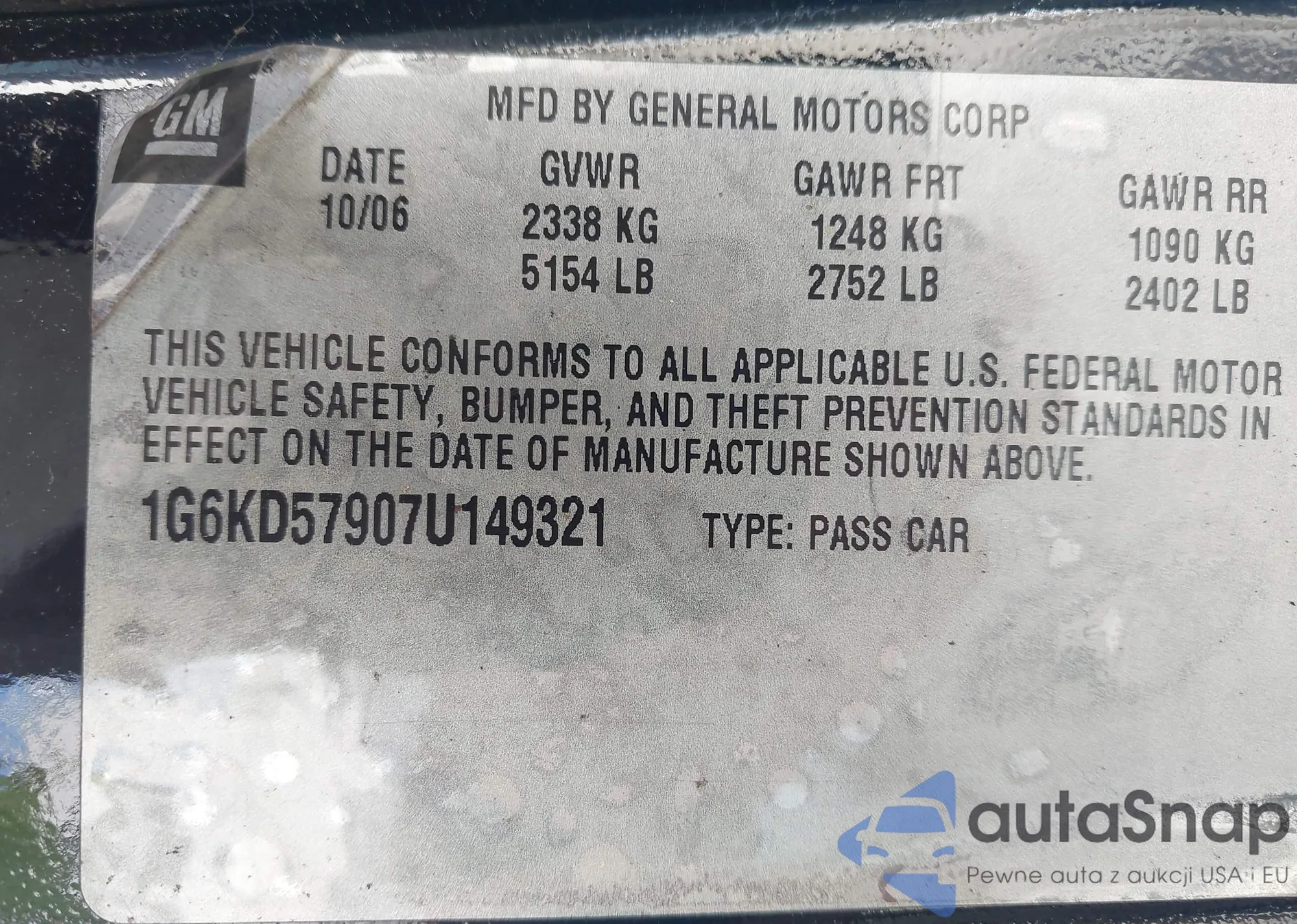 • VIN: 1G6KD57907U149321