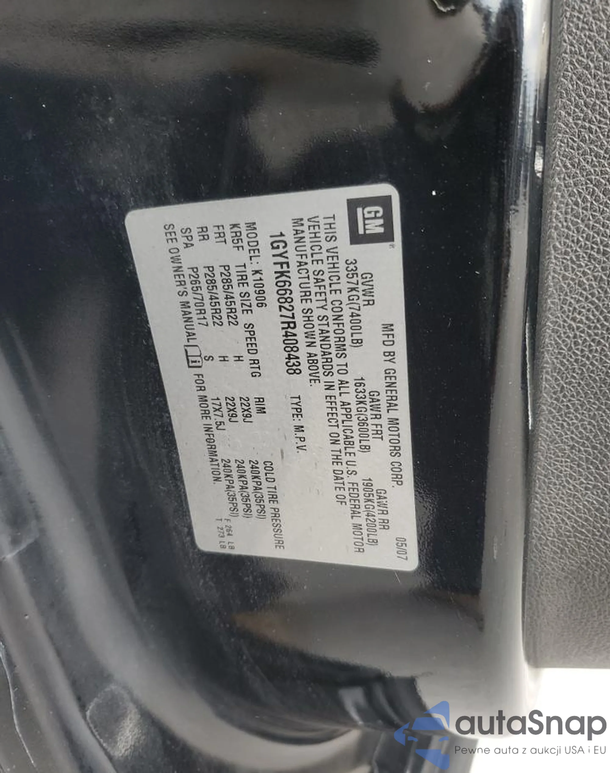 VIN: 1GYFK66827R408438
