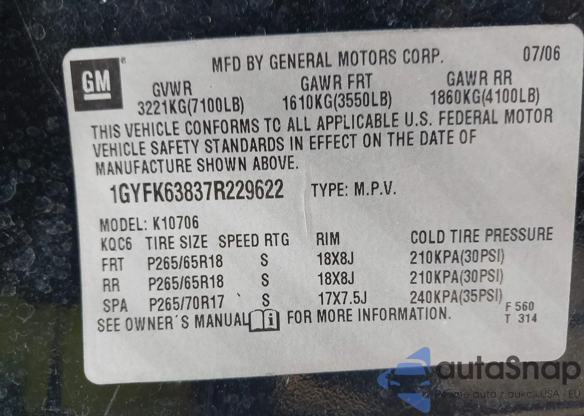 VIN: 1GYFK63837R229622