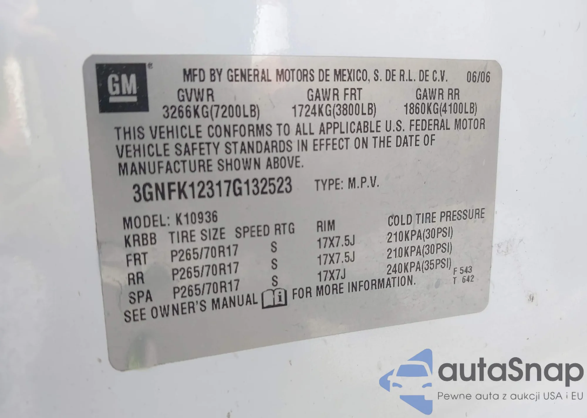 VIN: 3GNFK12317G132523