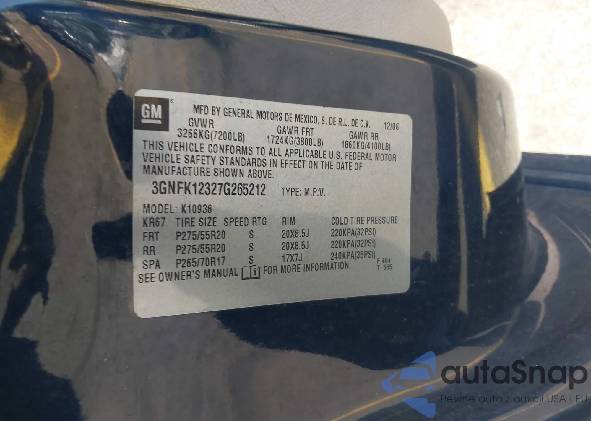 VIN: 3GNFK12327G265212