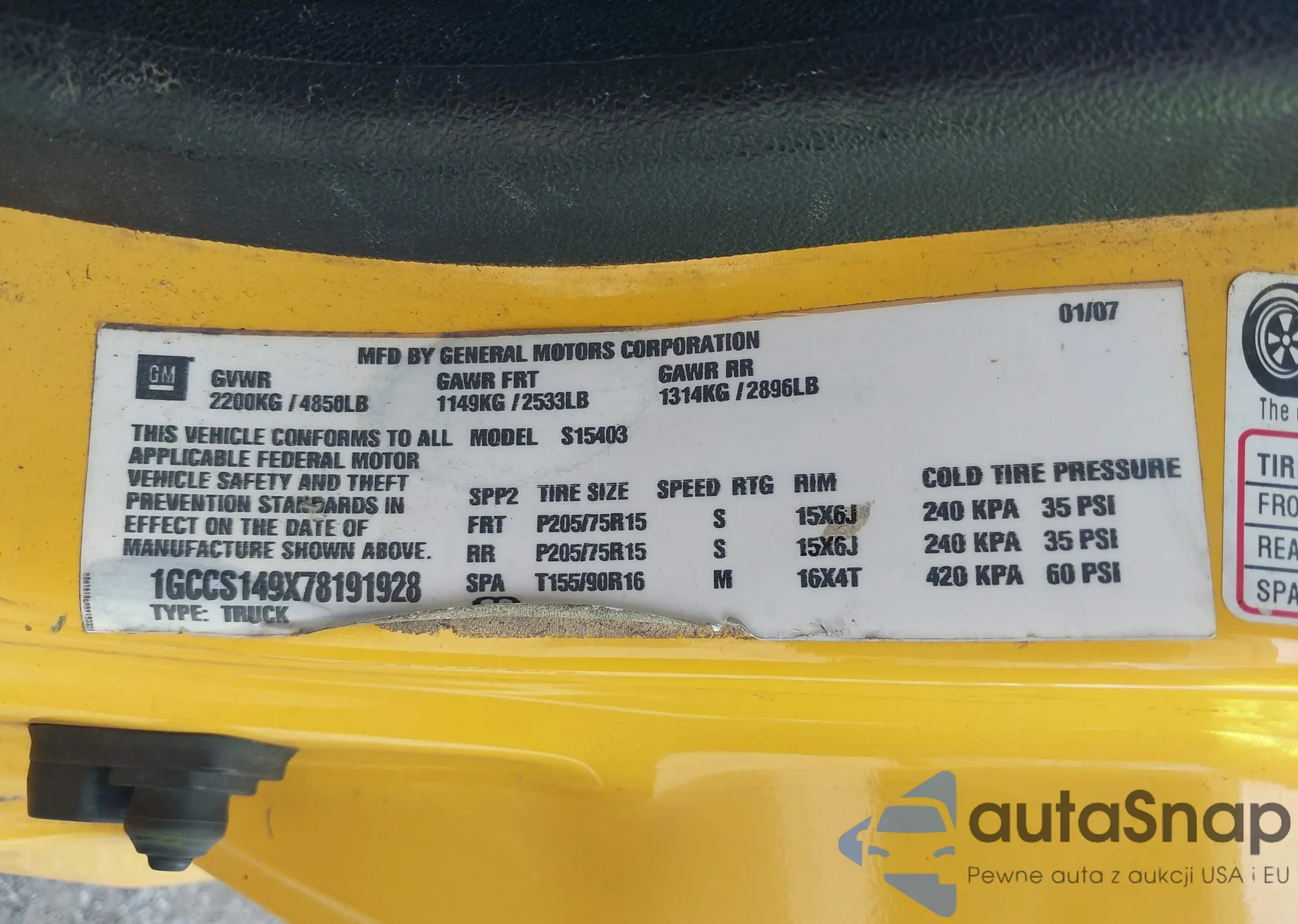 VIN: 1GCCS149X78191928