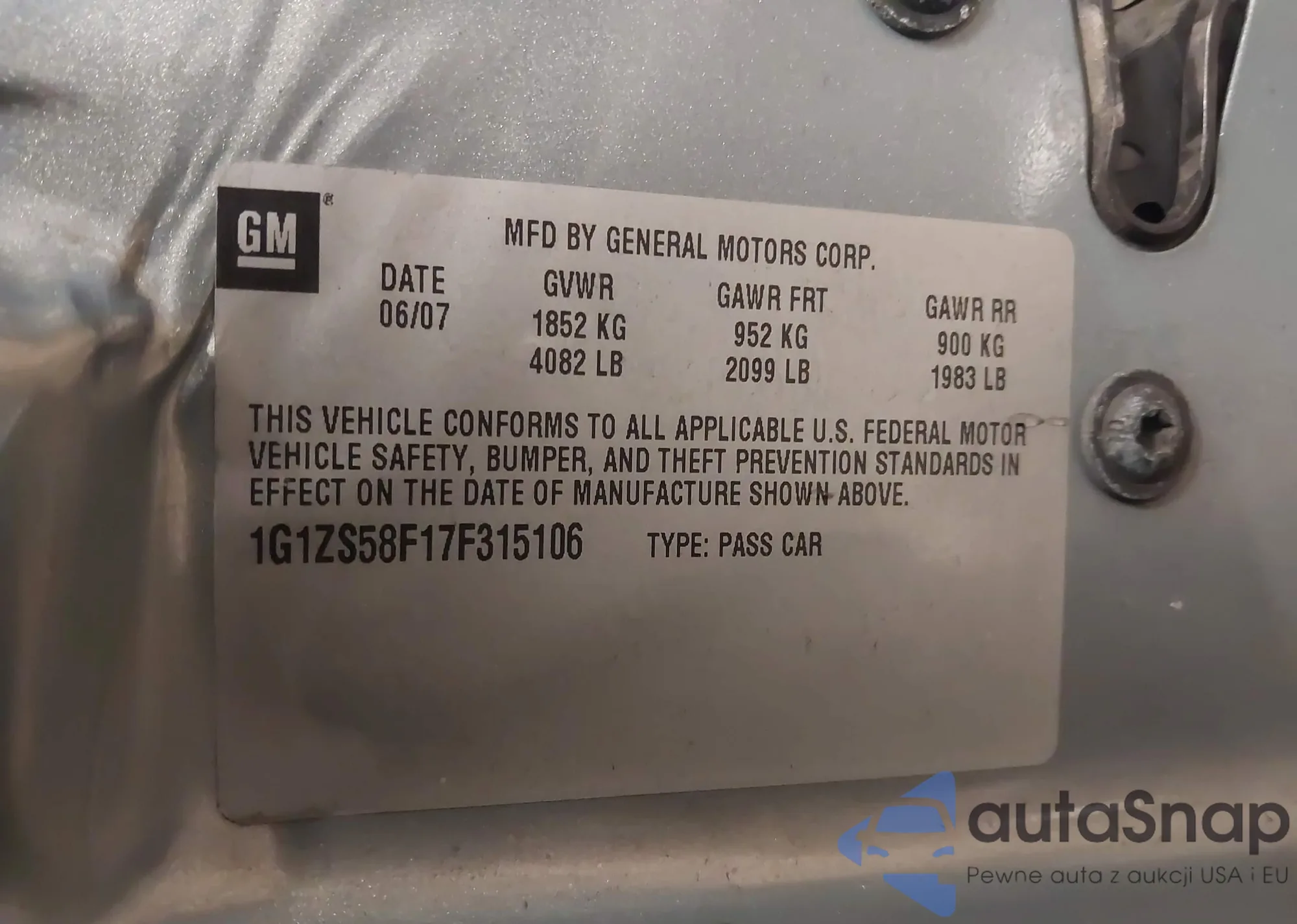 VIN: 1G1ZS58F17F315106