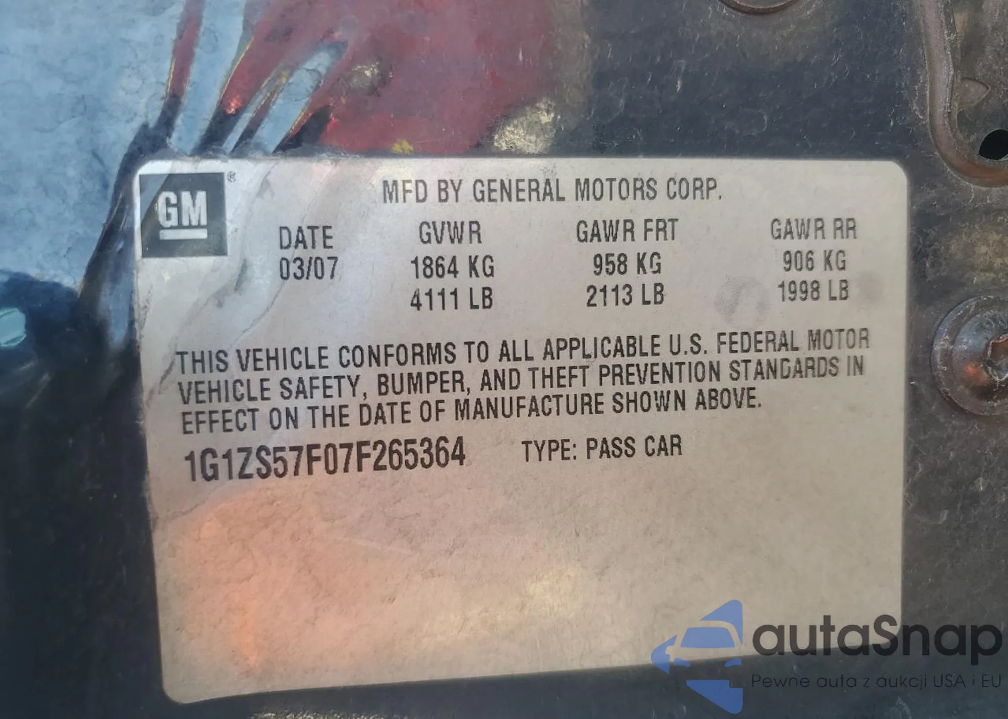 • VIN: 1G1ZS57F07F265364