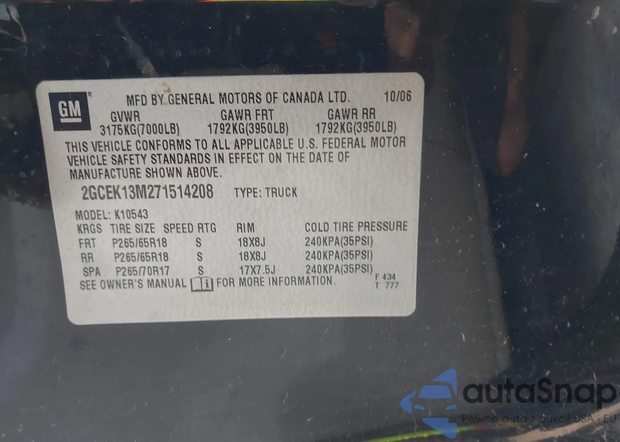 VIN: 2GCEK13M271514208