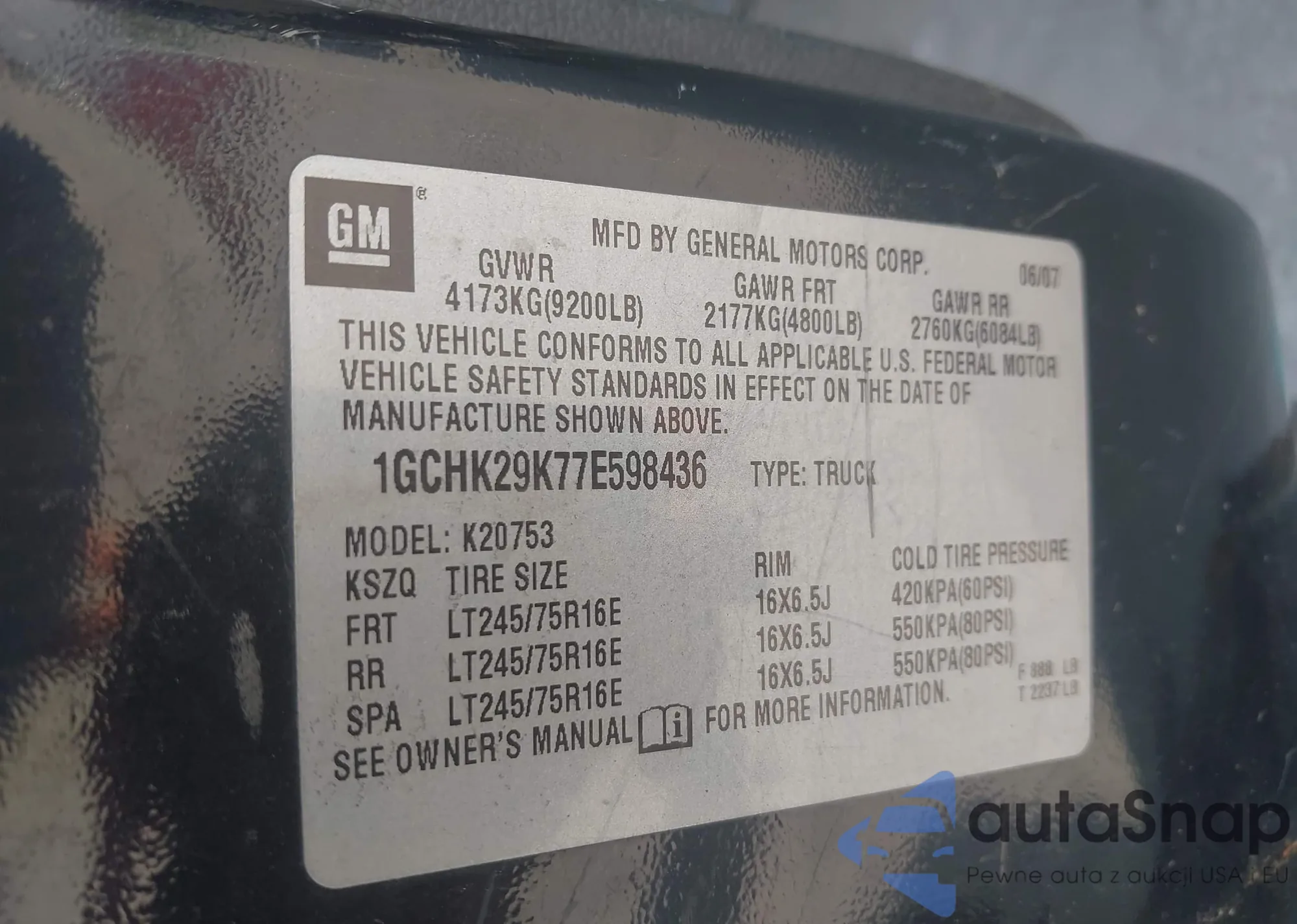 VIN: 1GCHK29K77E598436