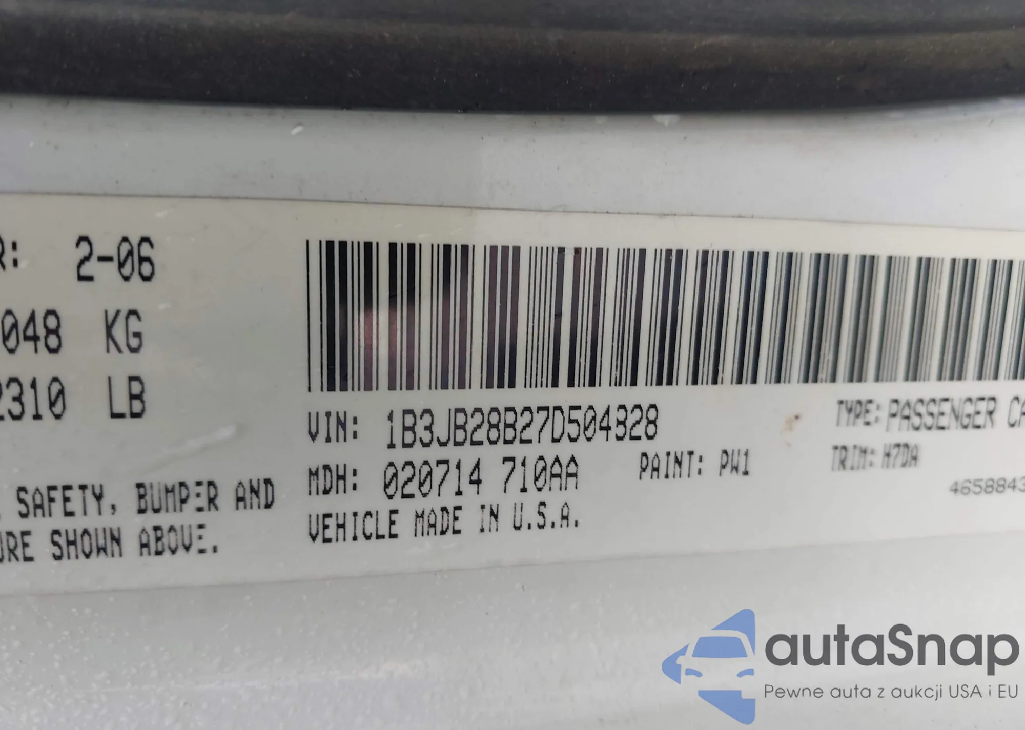 VIN: 1B3JB28B27D504828