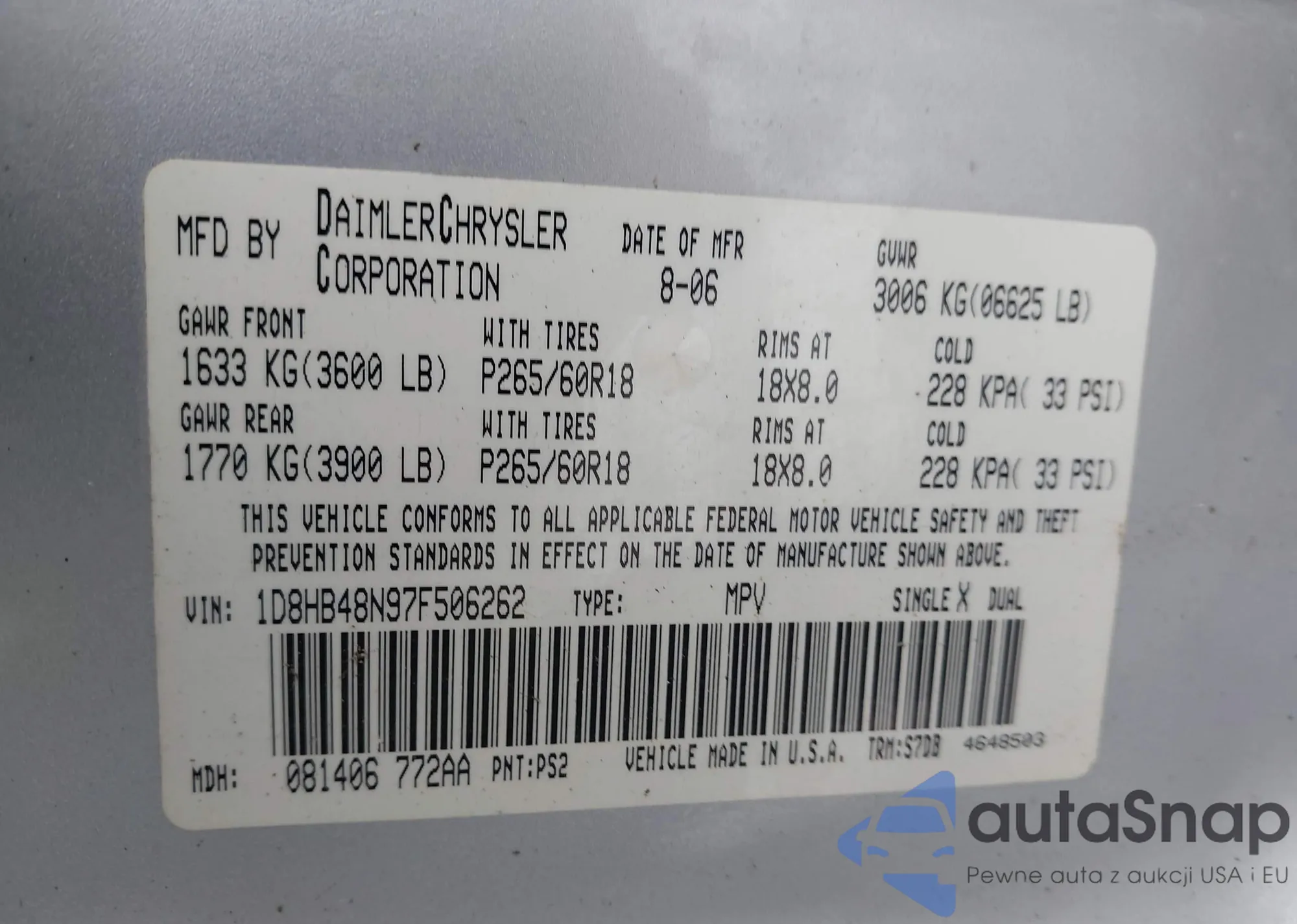 VIN: 1D8HB48N97F506262