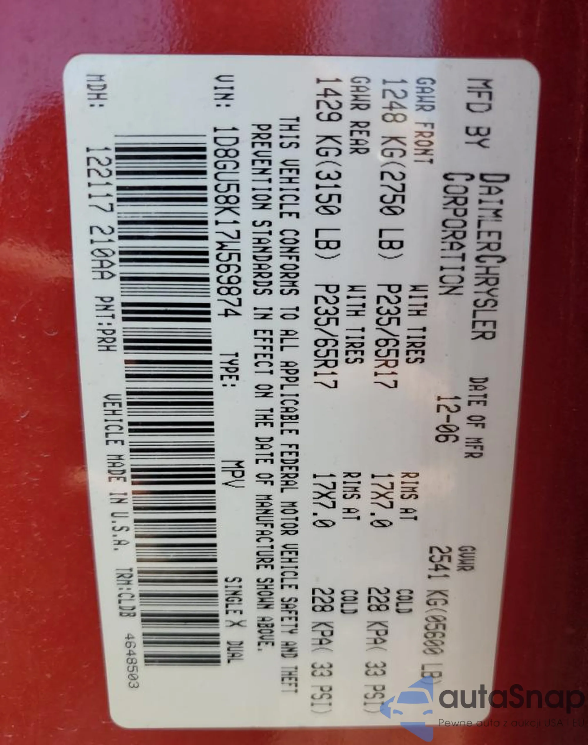 VIN: 1D8GU58K17W569874