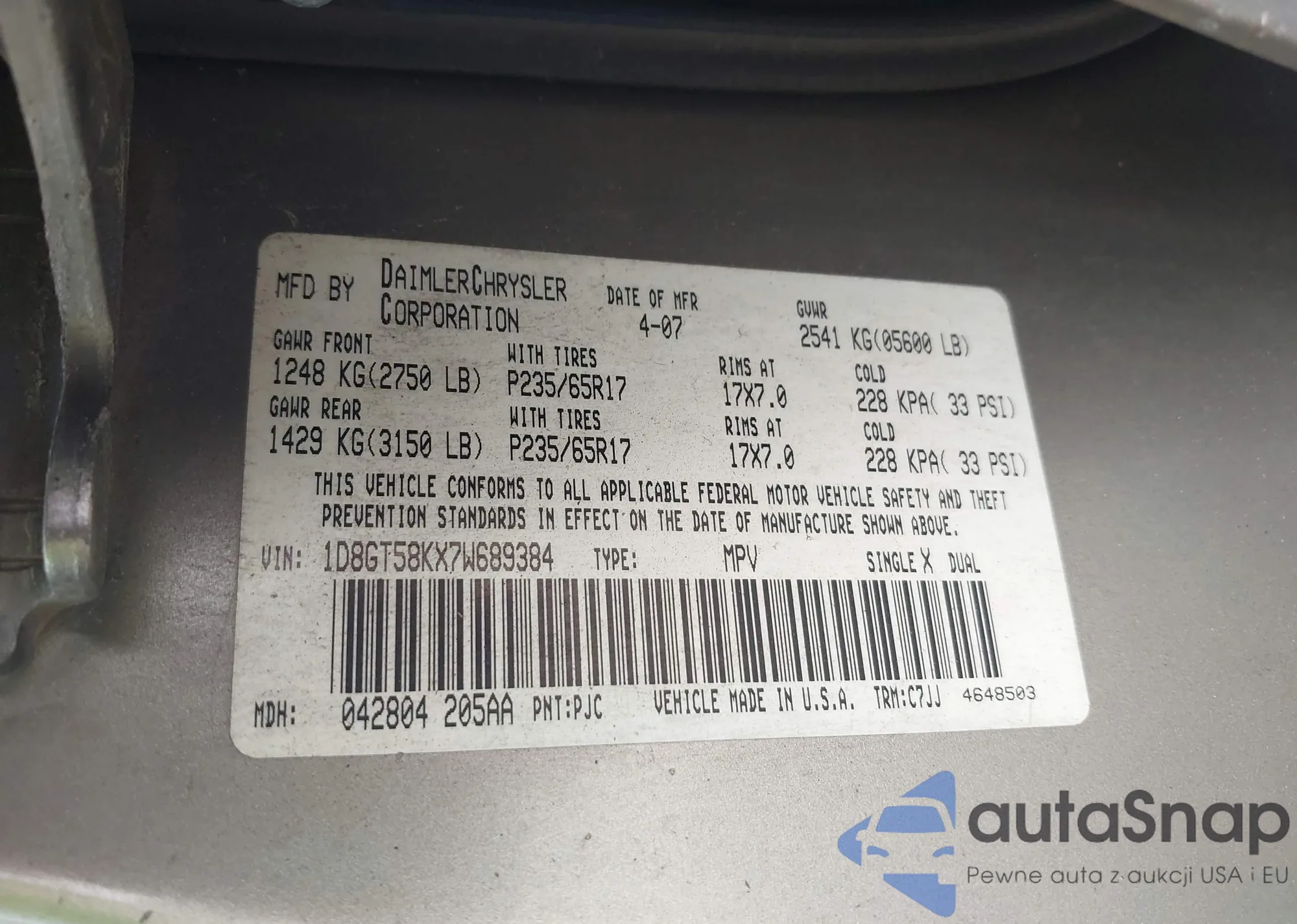 VIN: 1D8GT58KX7W689384