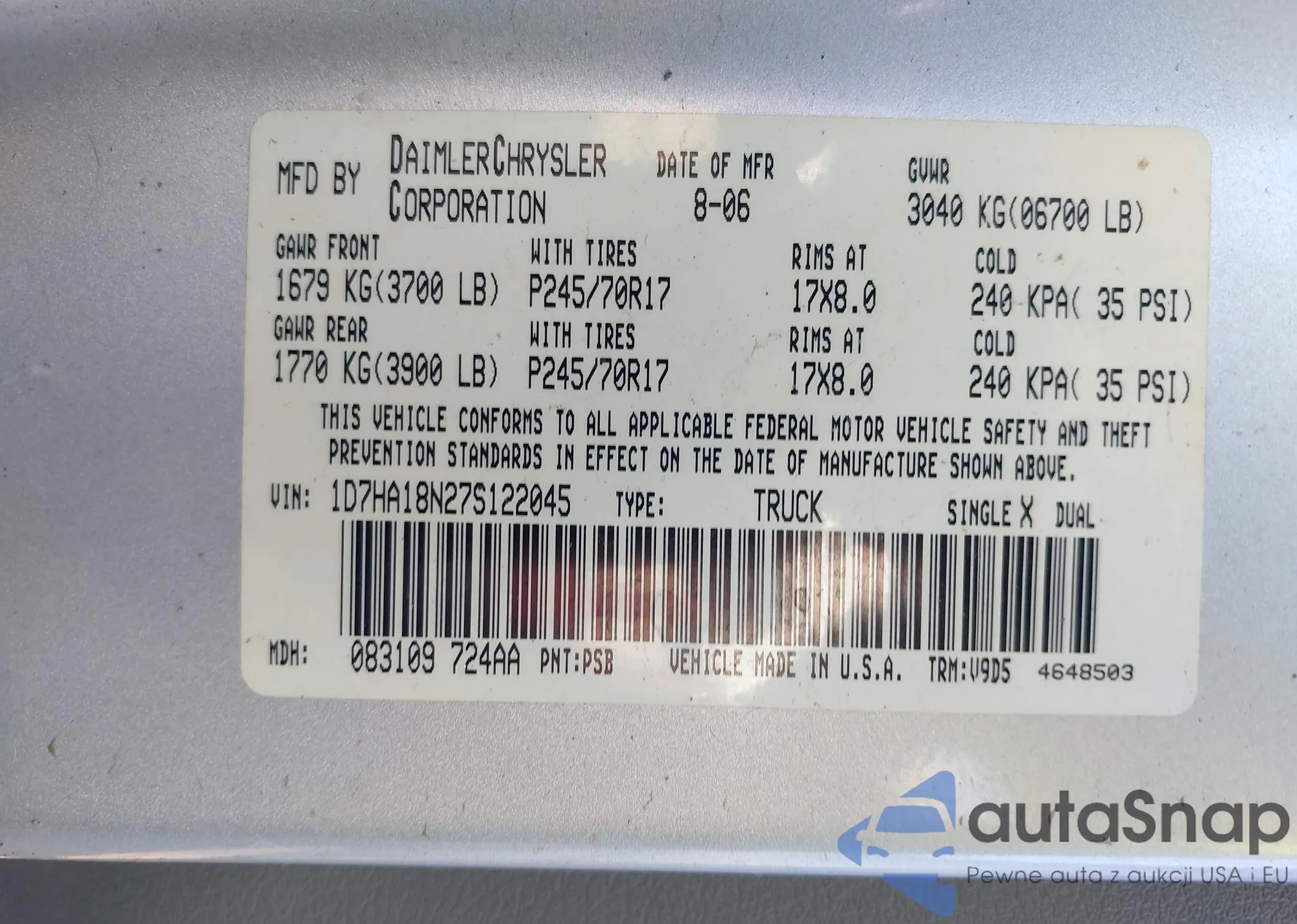 VIN: 1D7HA18N27S122045