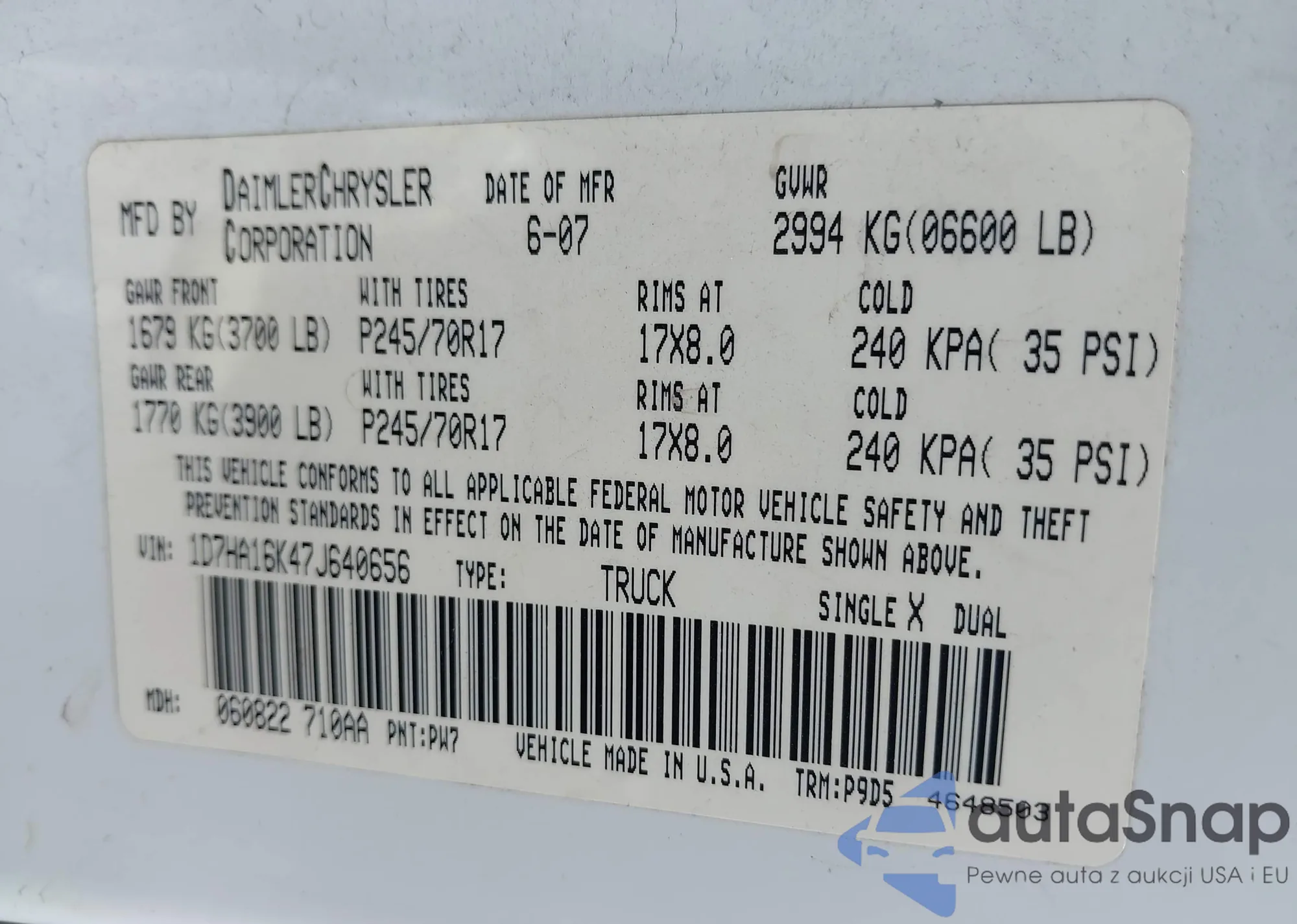 VIN: 1D7HA16K47J640656