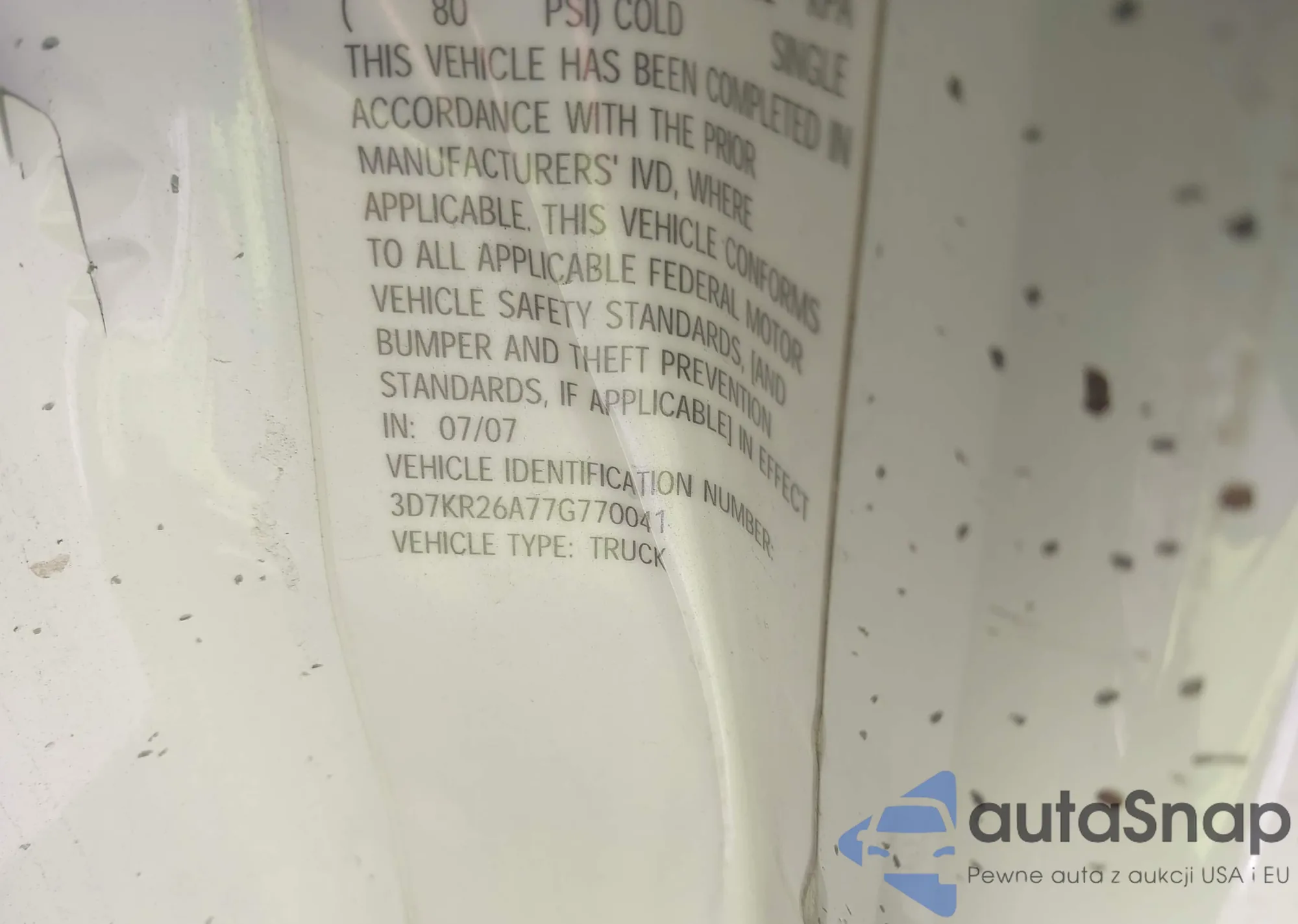 • VIN: 3D7KR26A77G770041