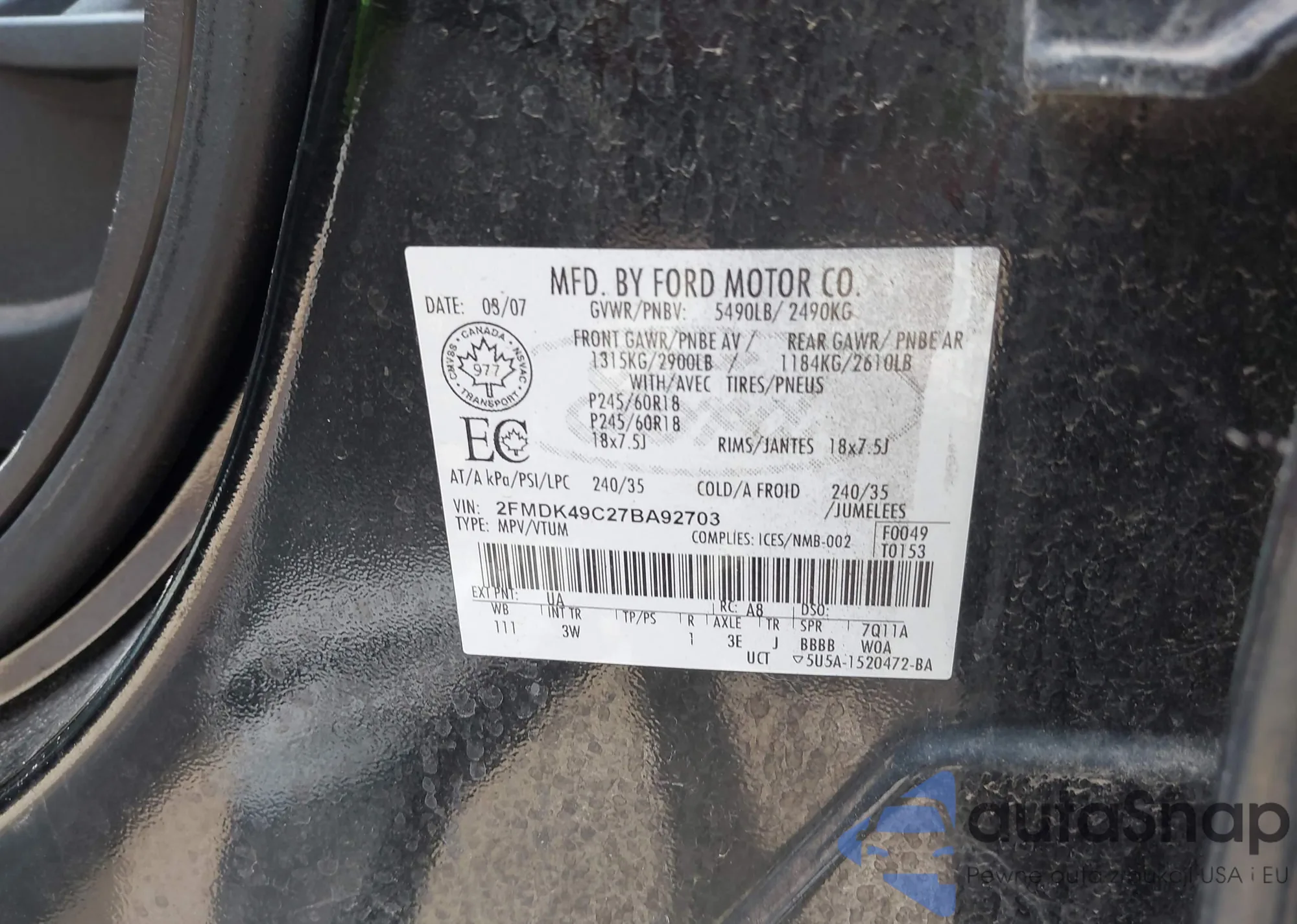 VIN: 2FMDK49C27BA92703