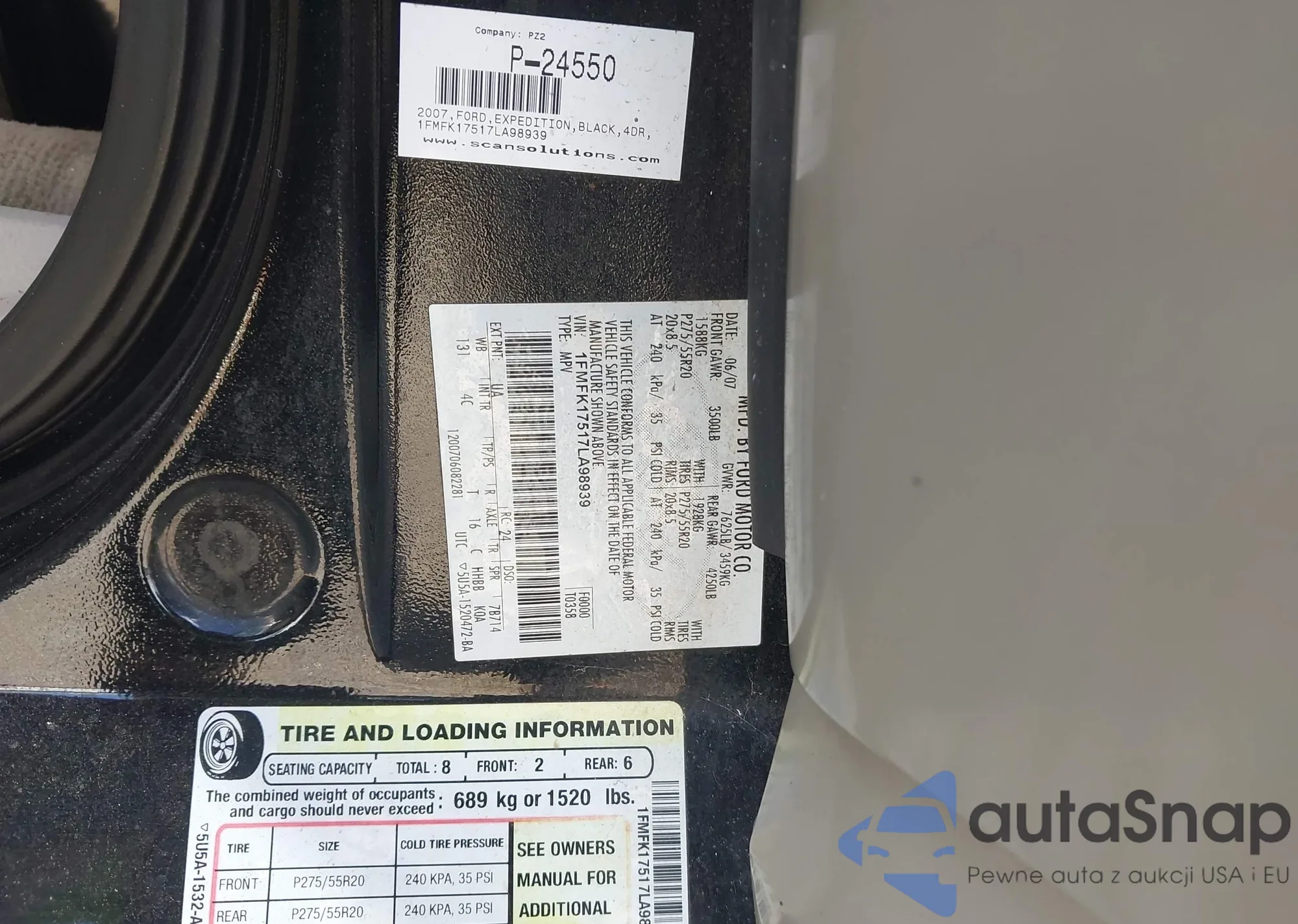 Samochód Ford Expedition 2007 (VIN 1FMFK17517LA98939) nie był wcześniej licytowany. Dokumenty są czyste, przebieg odpowiada lub jest niższy niż średnia rynku. Sprzedaje go firma ubezpieczeniowa – polecamy zakup. Dostawa do portu zajmie ok. 6–8 tygodni.