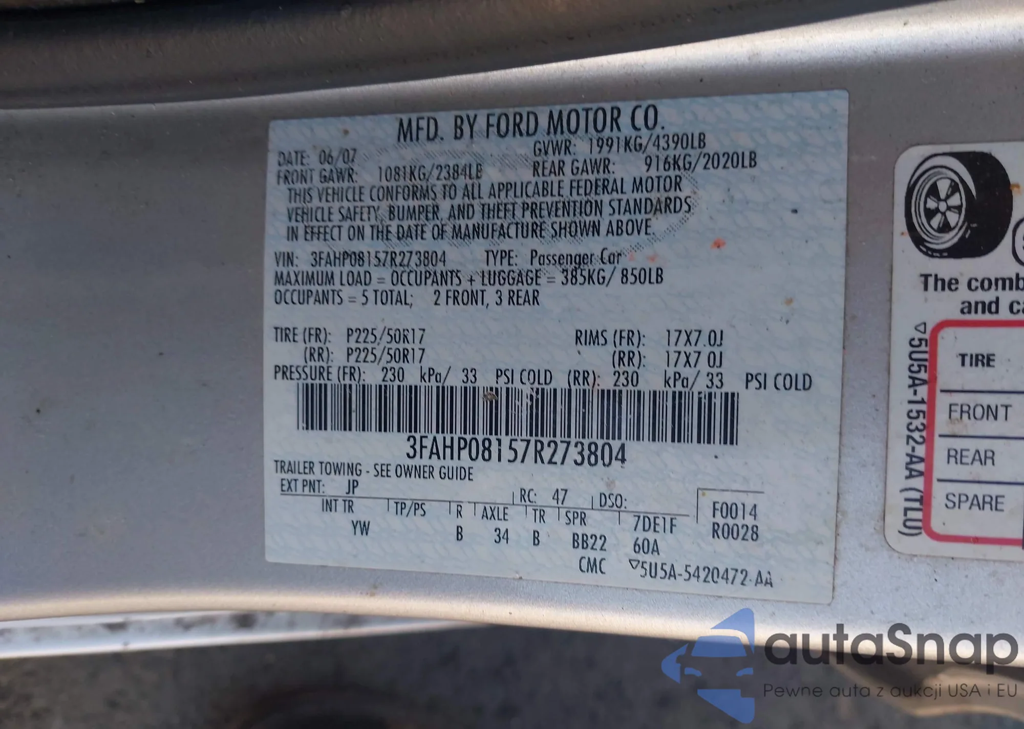 VIN: 3FAHP08157R273804