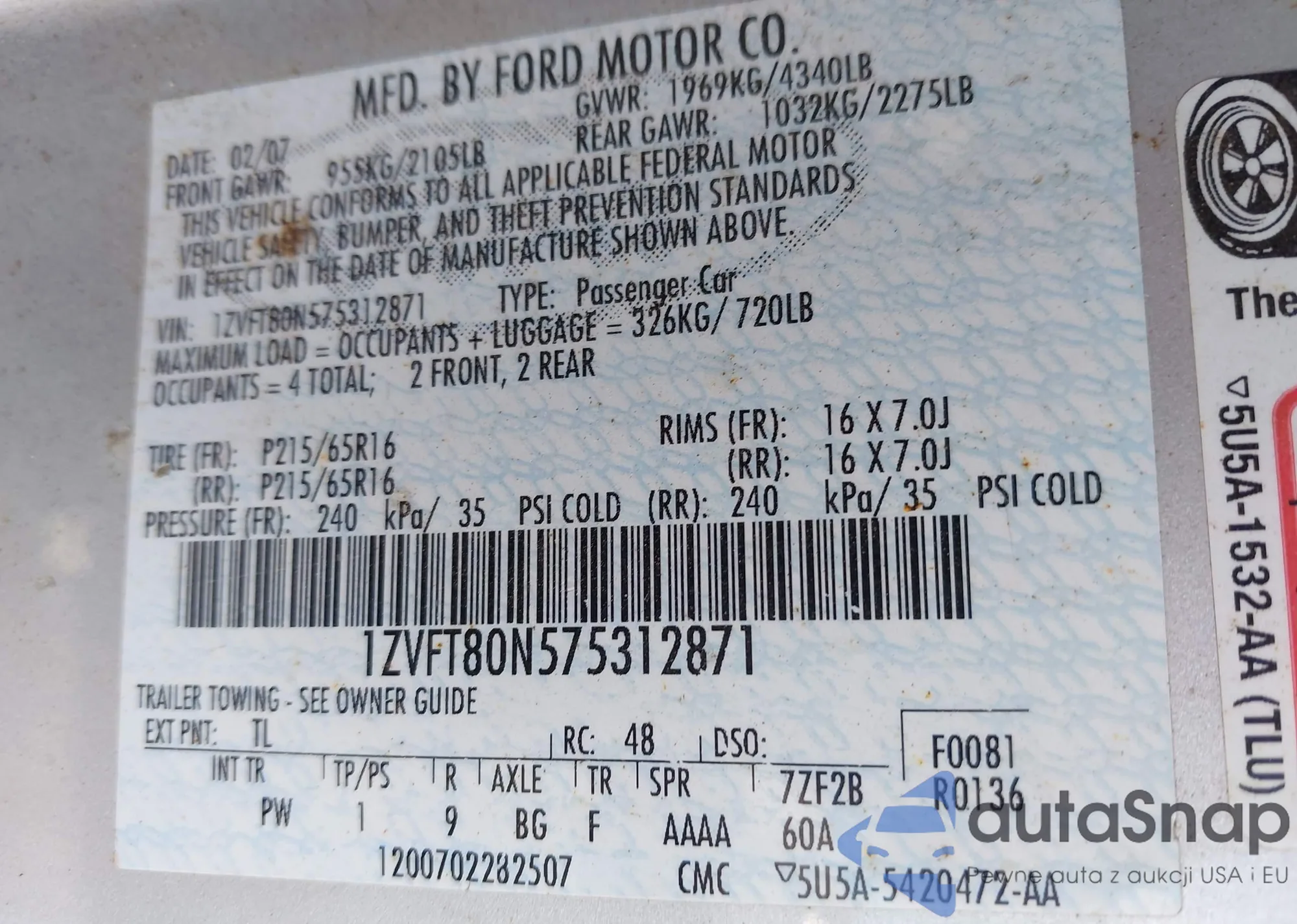 VIN: 1ZVFT80N575312871