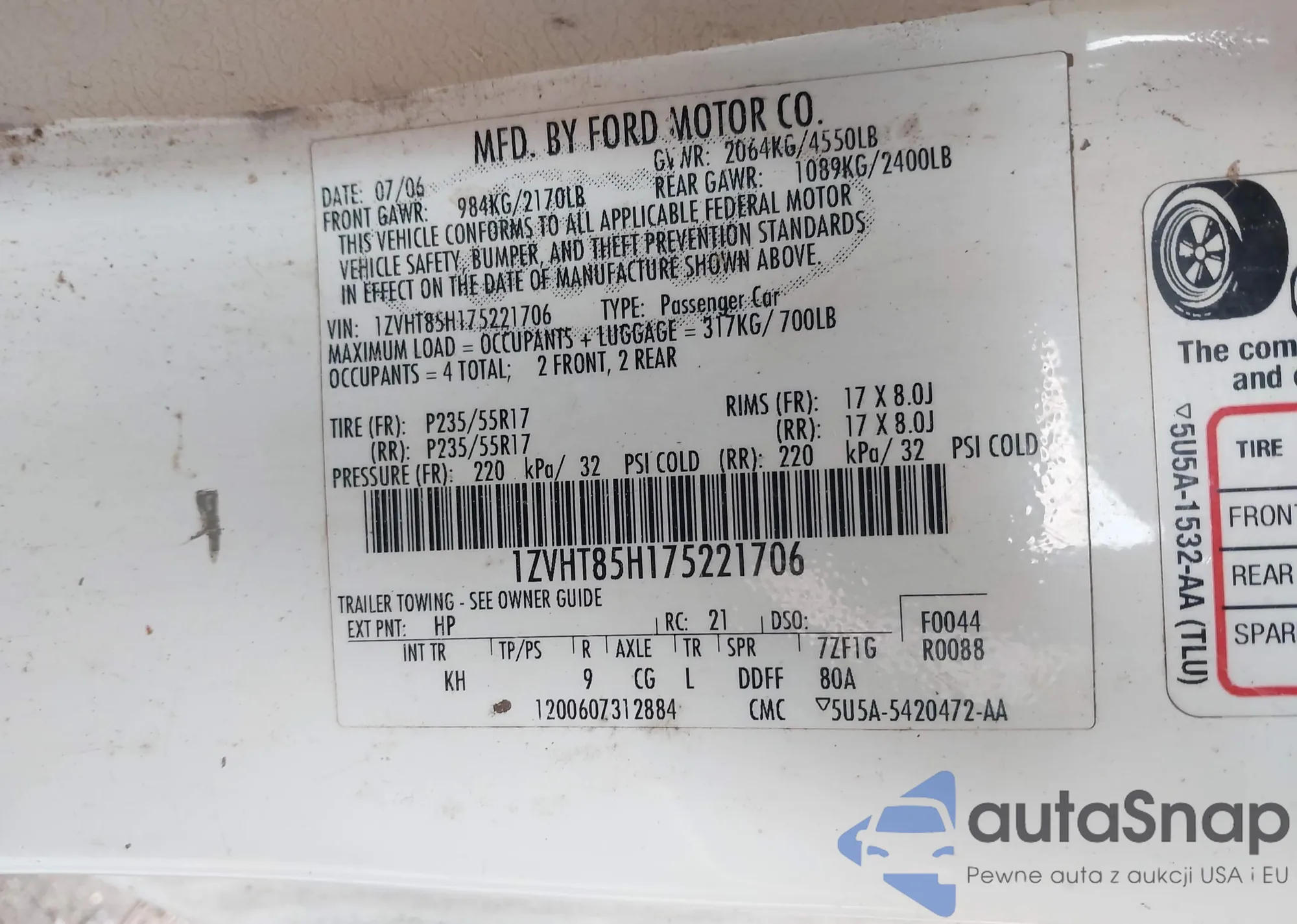 VIN: 1ZVHT85H175221706