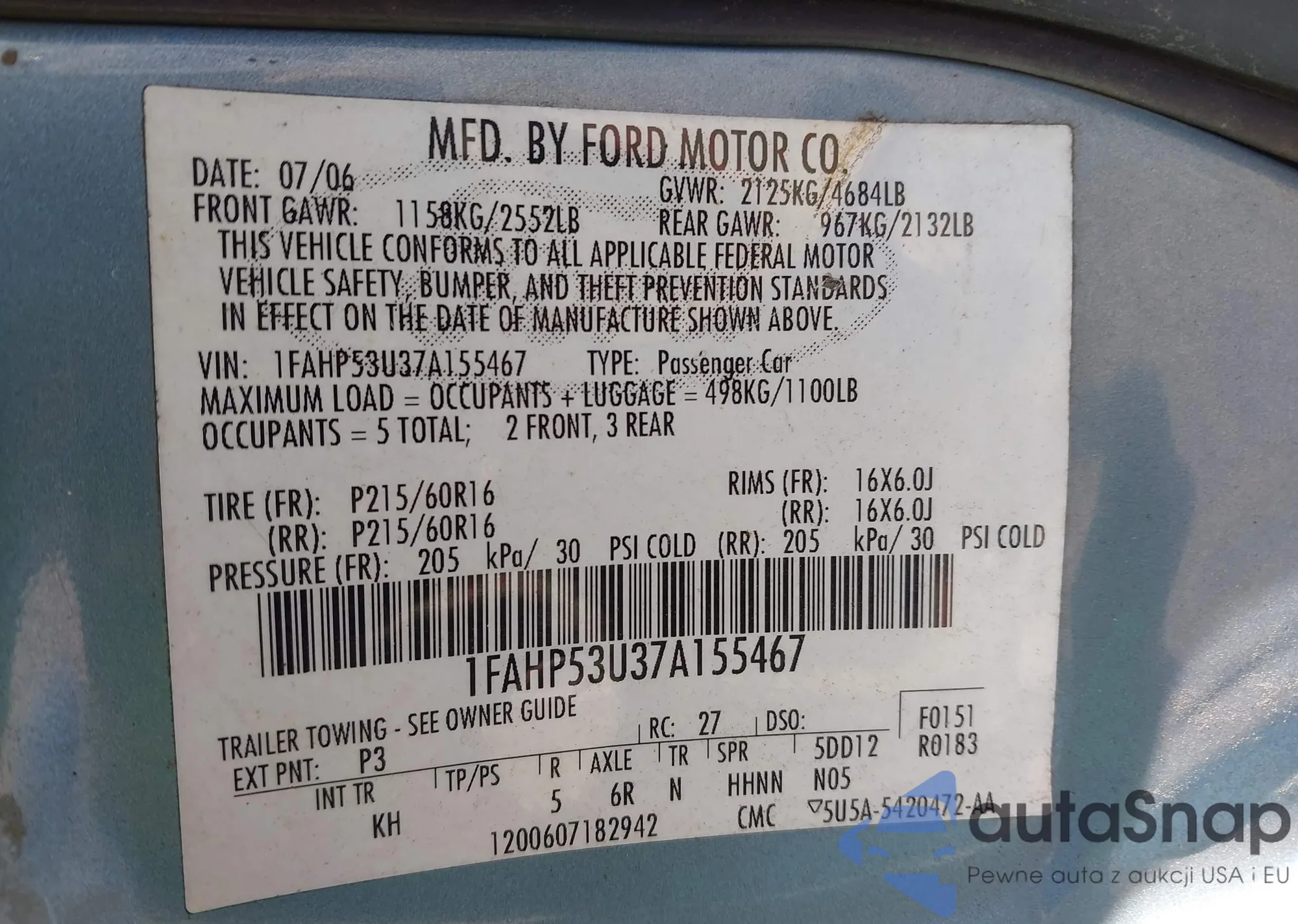 VIN: 1FAHP53U37A155467