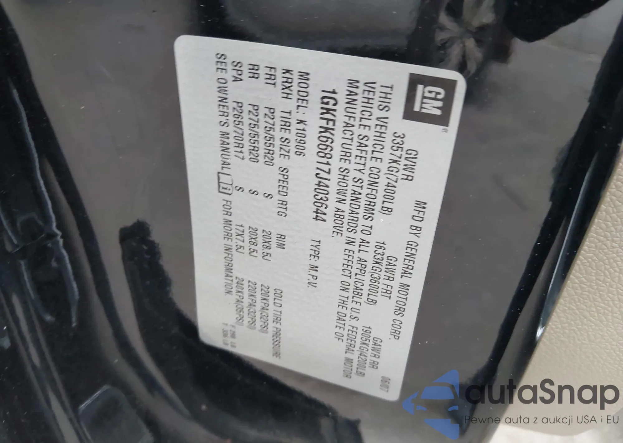 VIN: 1GKFK66817J403644