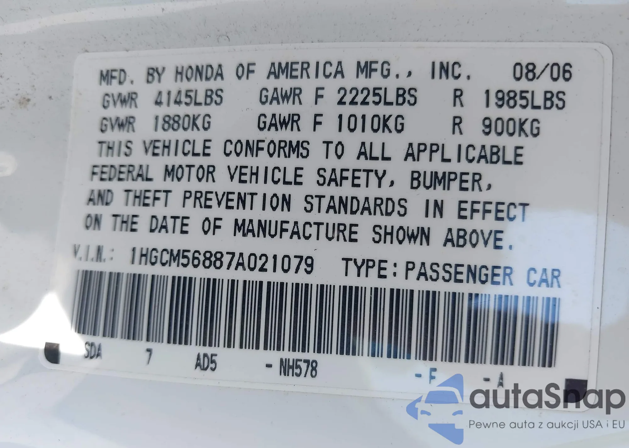 VIN: 1HGCM56887A021079