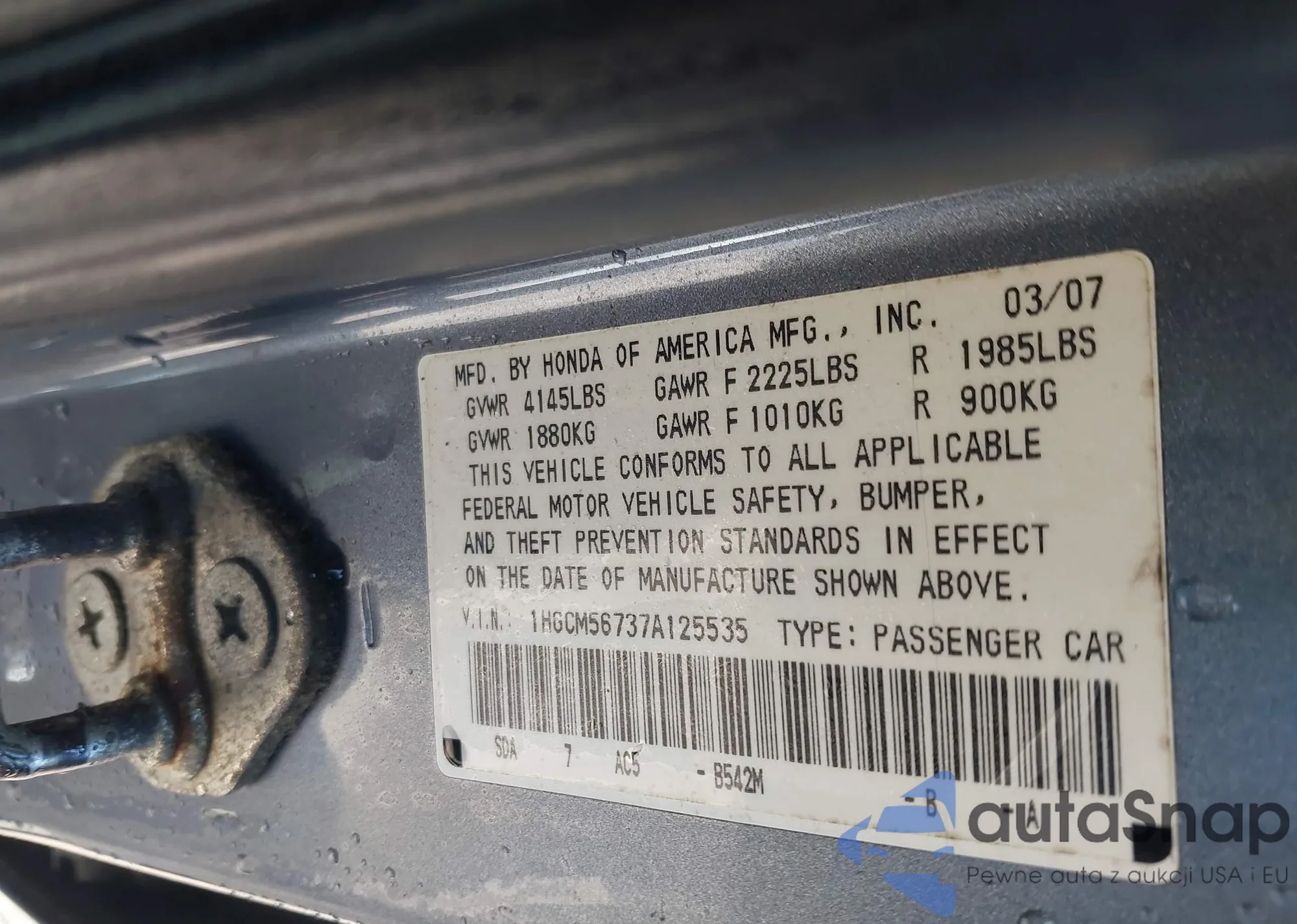 Samochód Honda Accord 2007 (VIN 1HGCM56737A125535) nie był wcześniej licytowany. Dokumenty są czyste, przebieg odpowiada lub jest niższy niż średnia rynku. Sprzedaje go firma ubezpieczeniowa – polecamy zakup. Dostawa do portu zajmie ok. 6–8 tygodni.