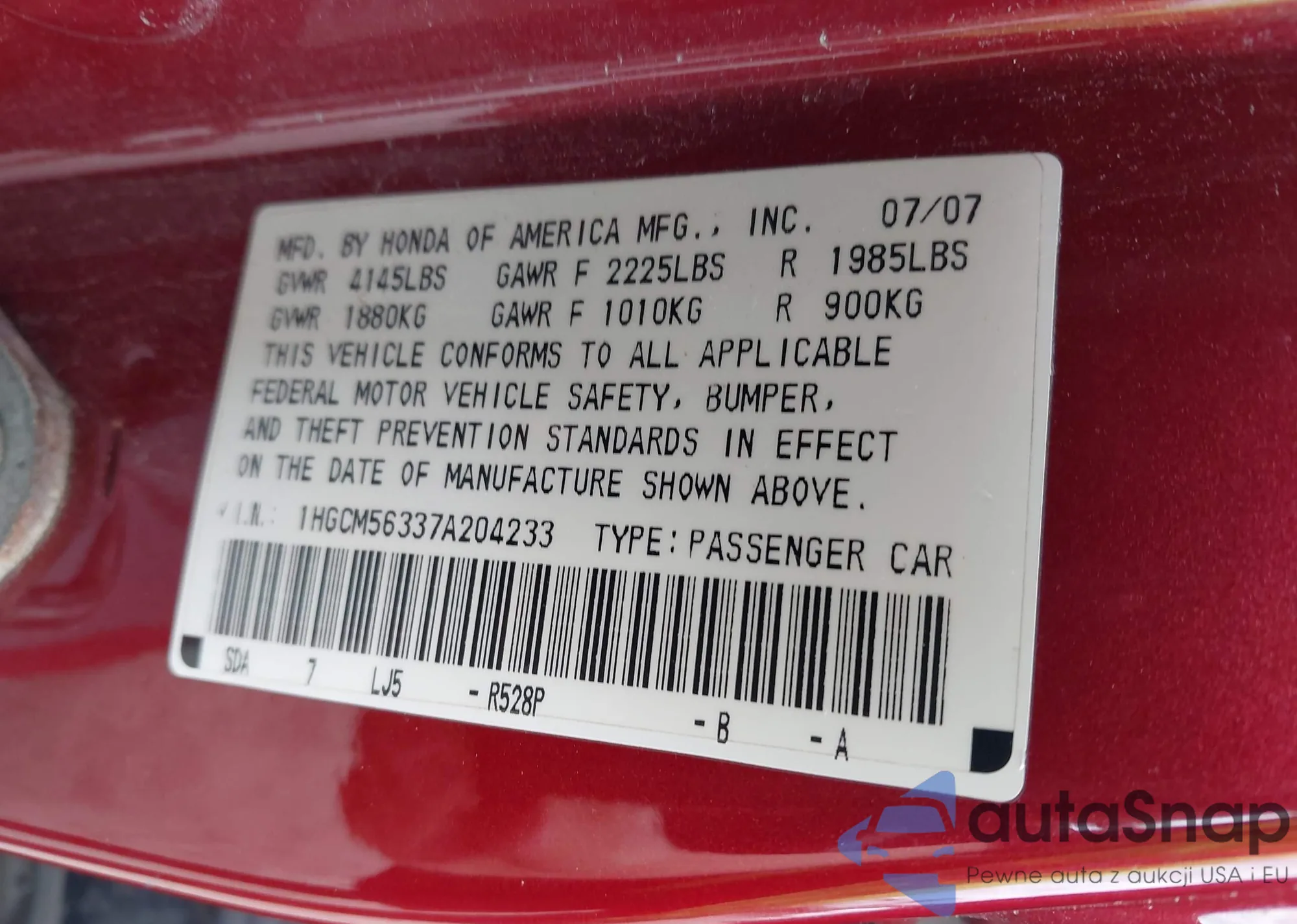VIN: 1HGCM56337A204233