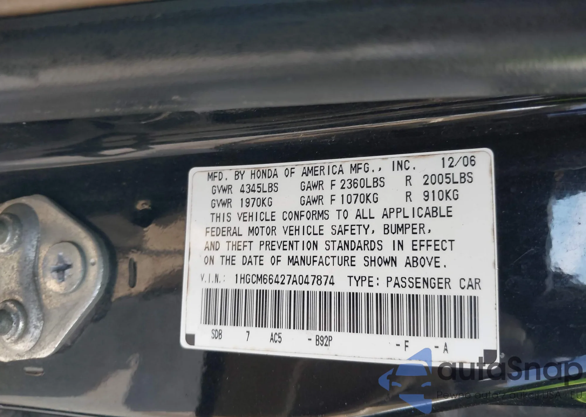 • VIN: 1HGCM66427A047874