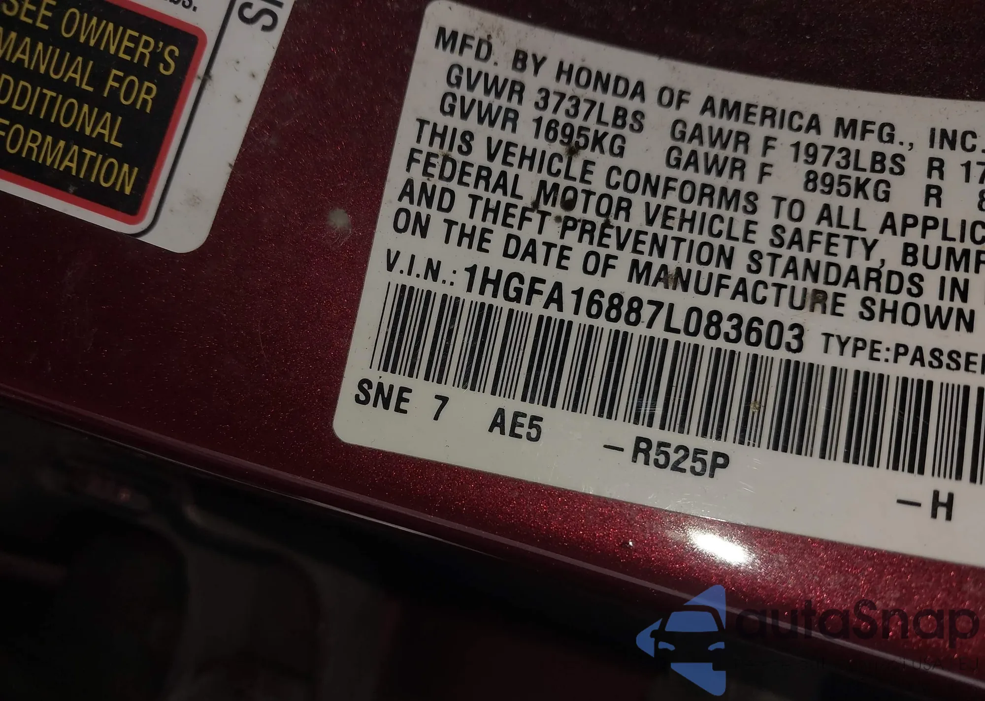 VIN: 1HGFA16887L083603
