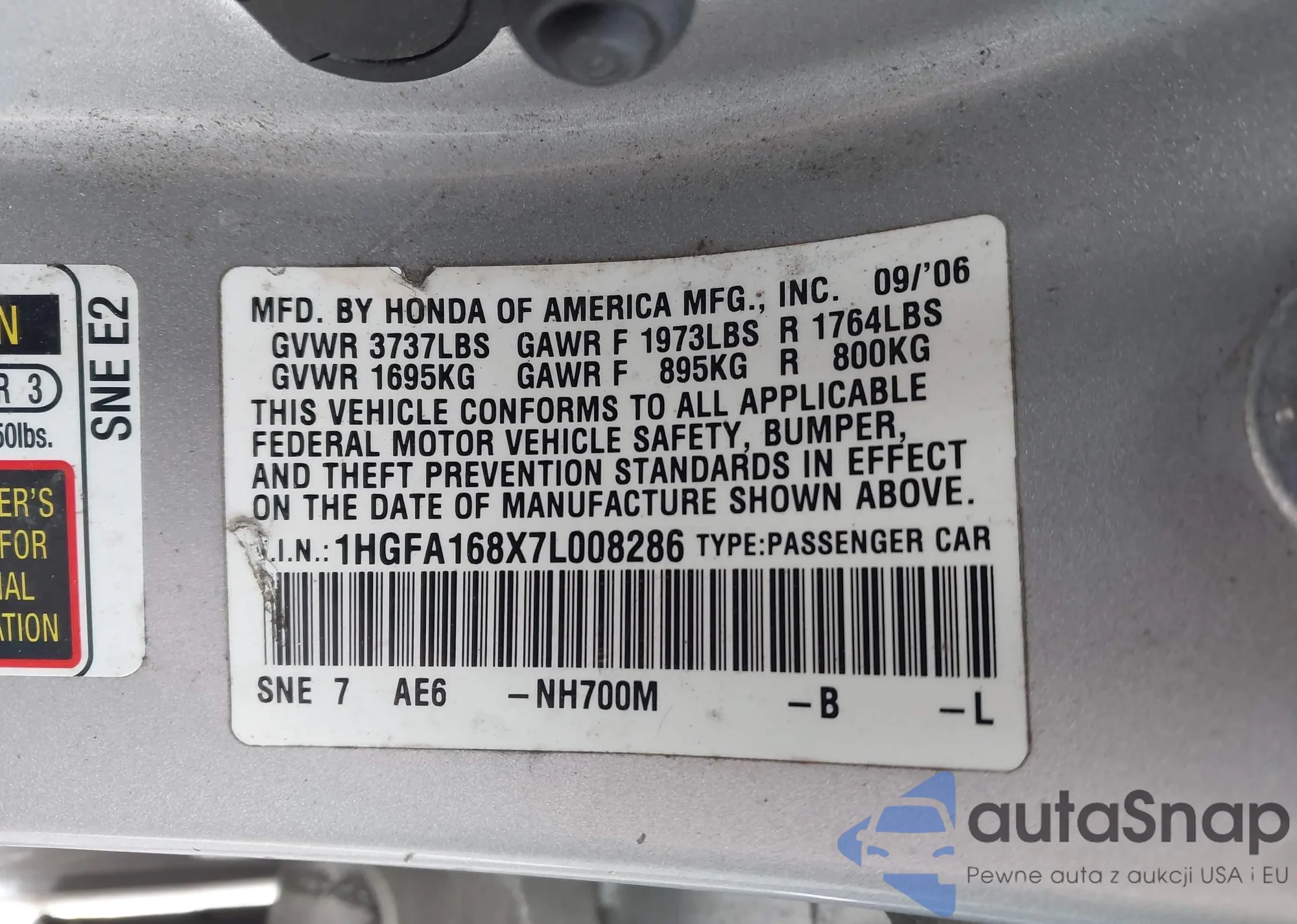 VIN: 1HGFA168X7L008286
