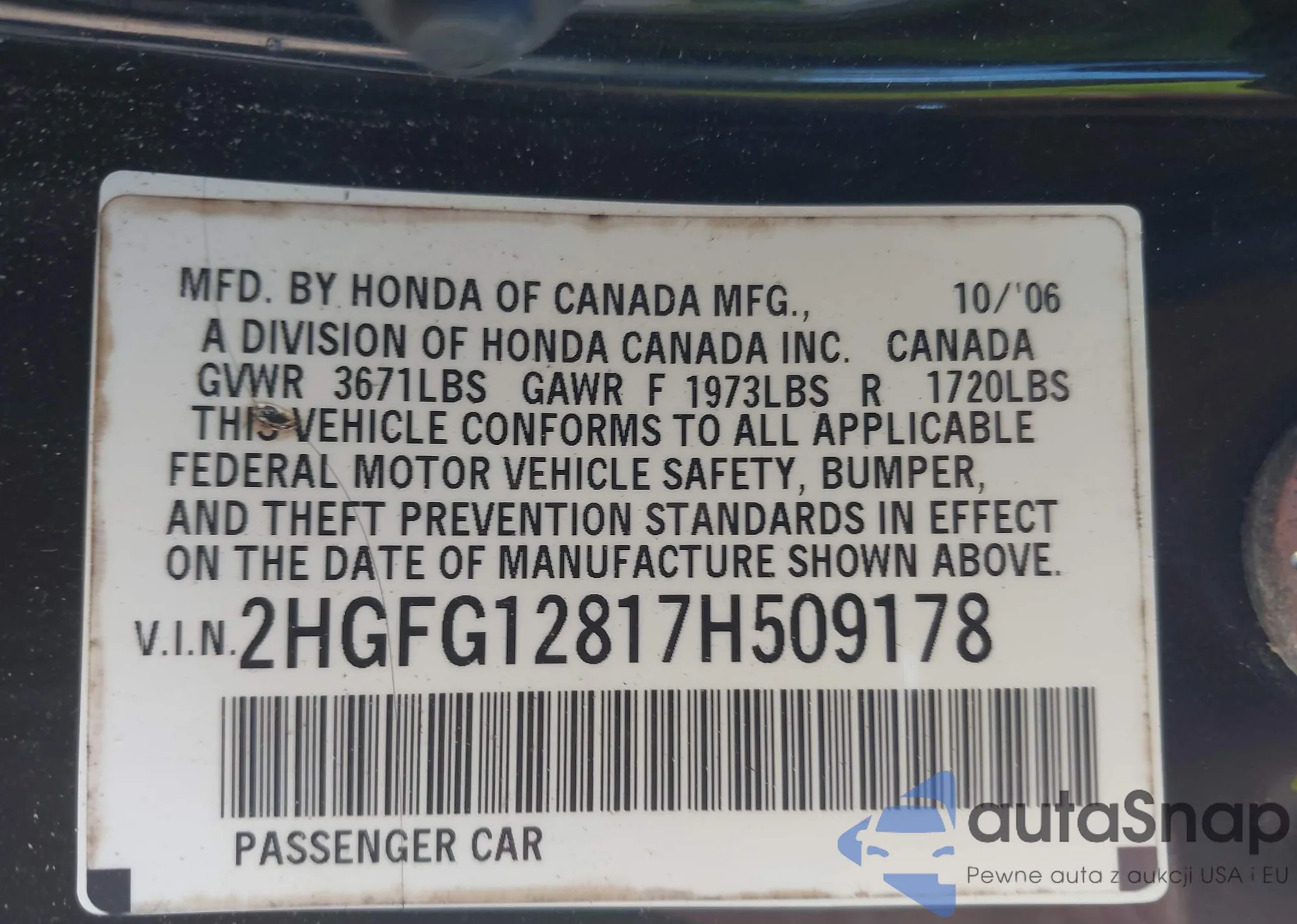 VIN: 2HGFG12817H509178