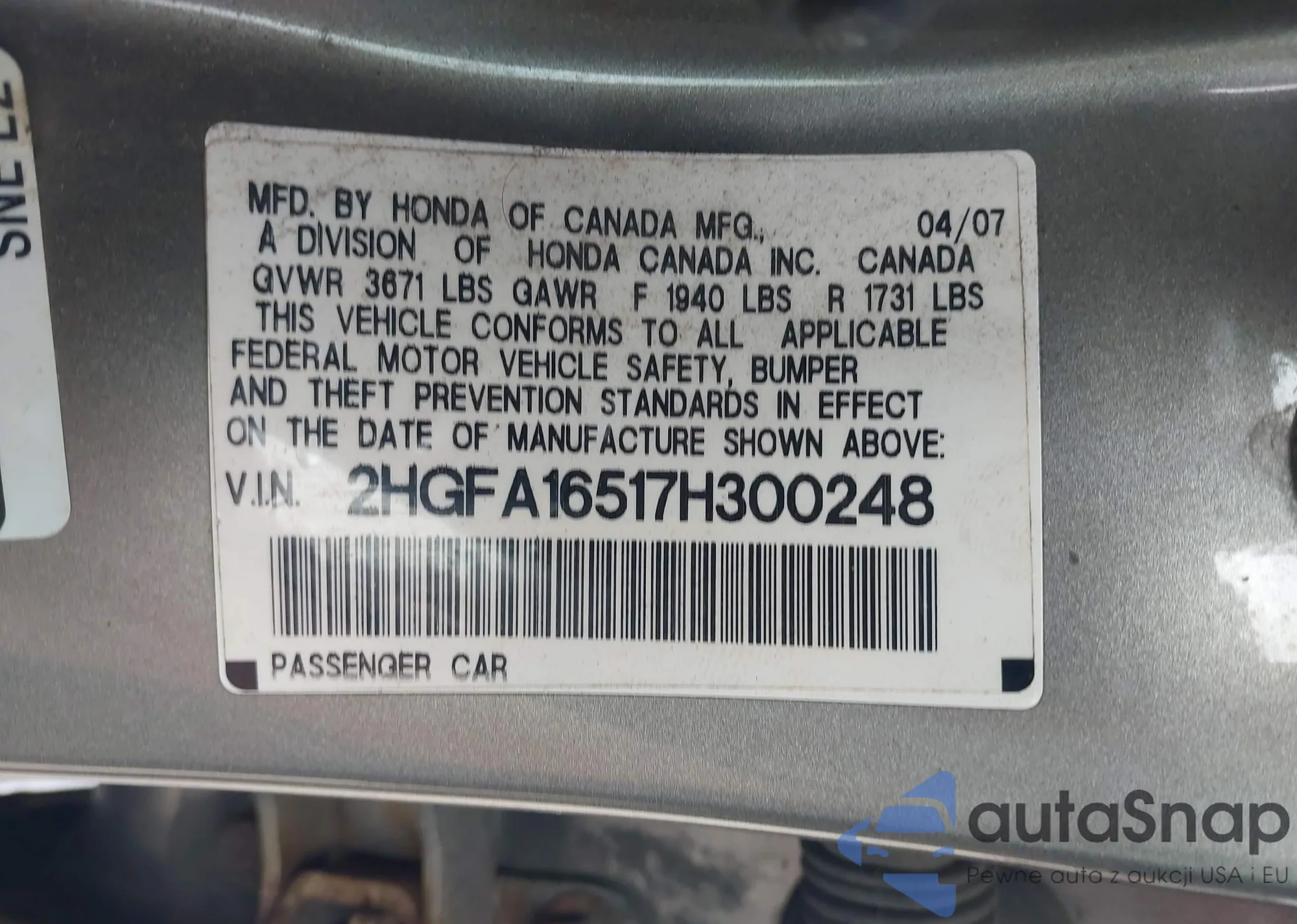 VIN: 2HGFA16517H300248