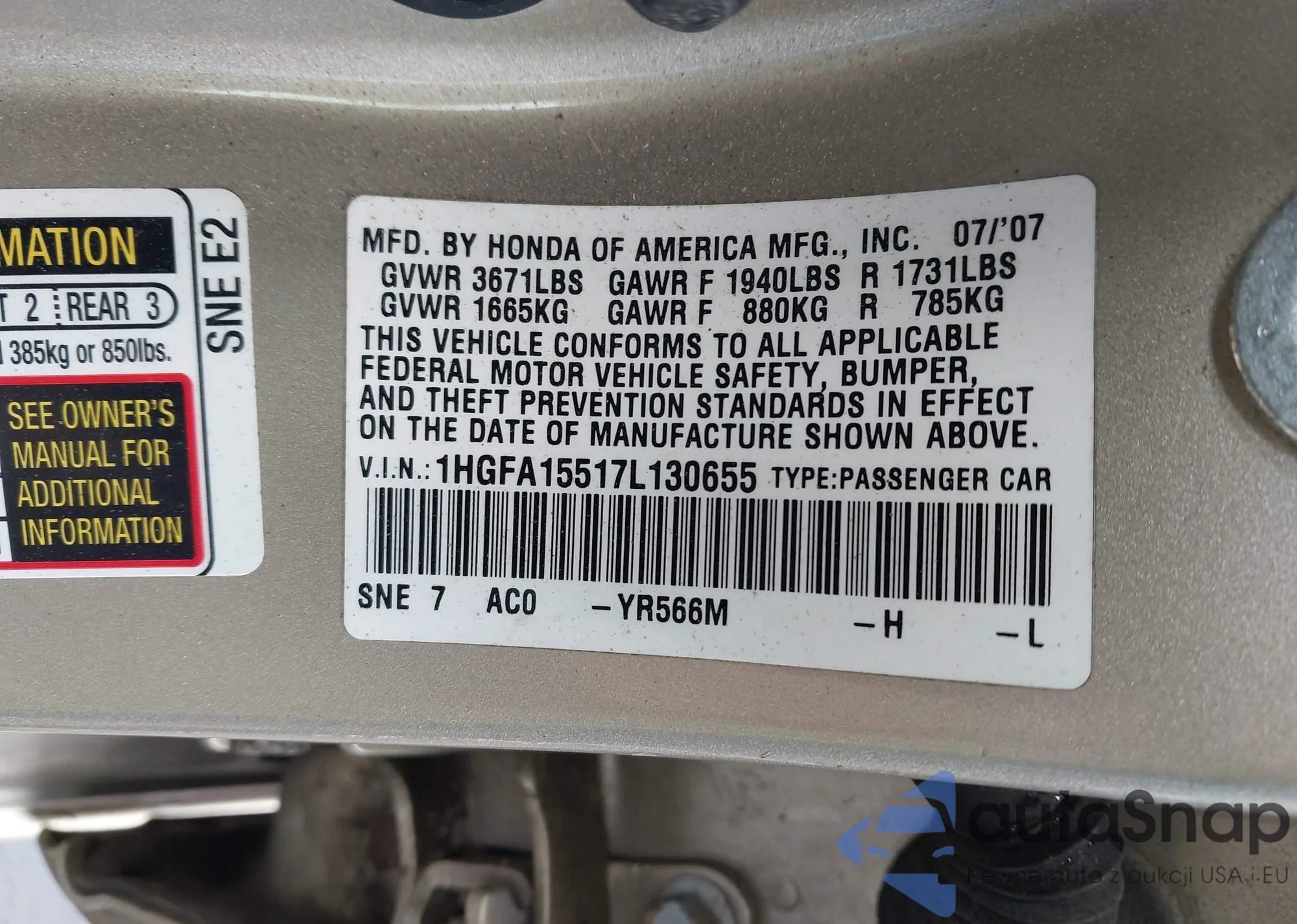 VIN: 1HGFA15517L130655