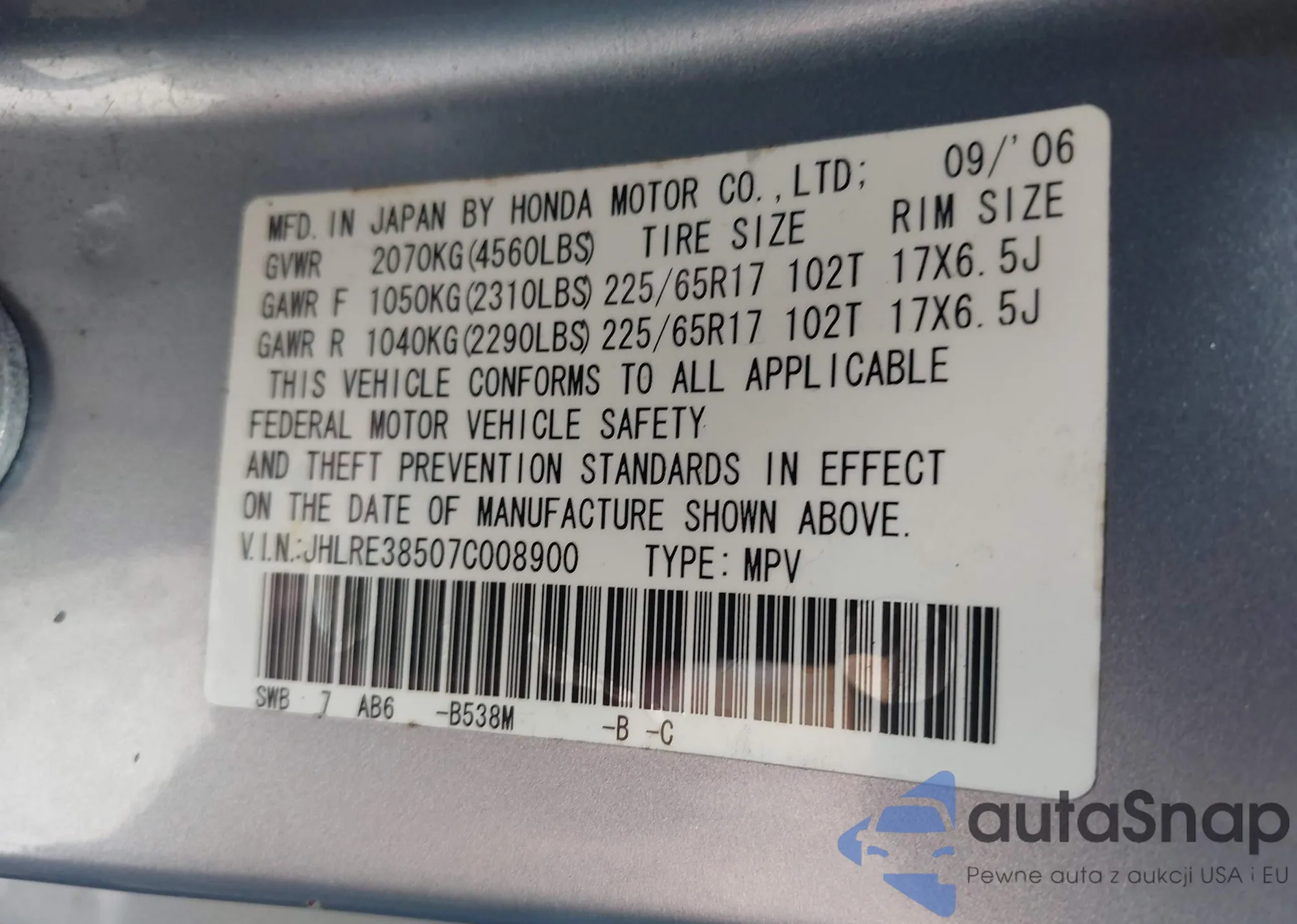 Honda CR-V 2007 – Historia pojazdu (sprzedany na IAAI)