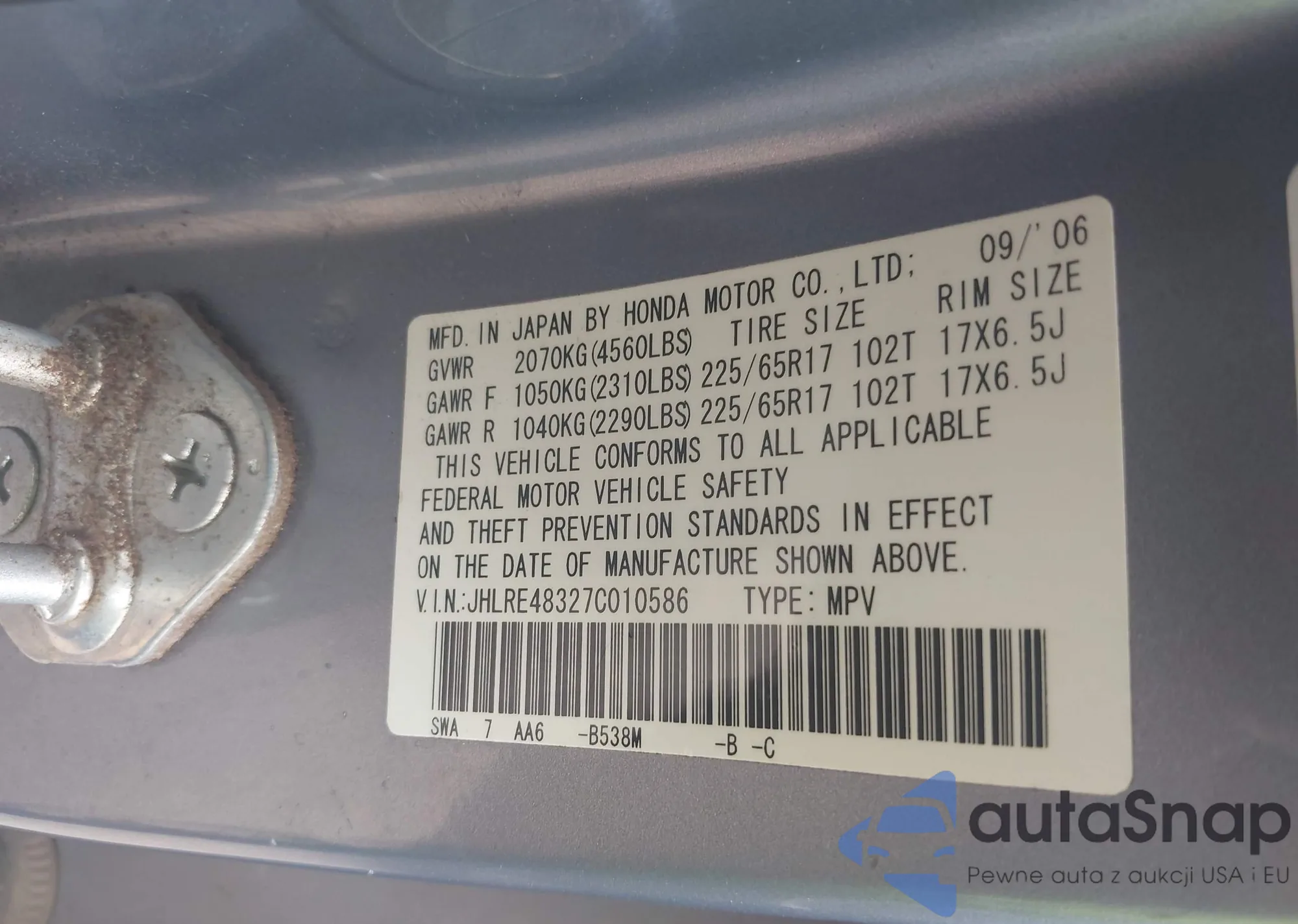 Honda CR-V 2007 – Historia pojazdu (sprzedany na IAAI)