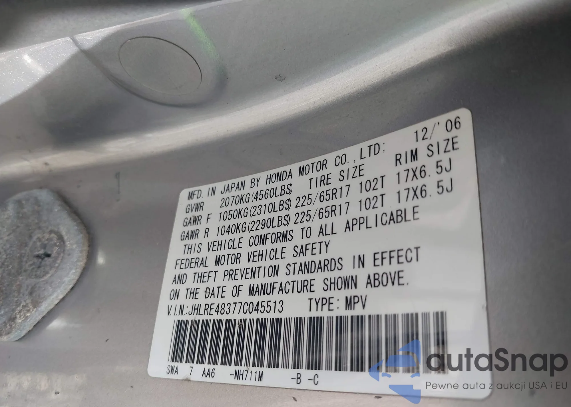 • VIN: JHLRE48377C045513