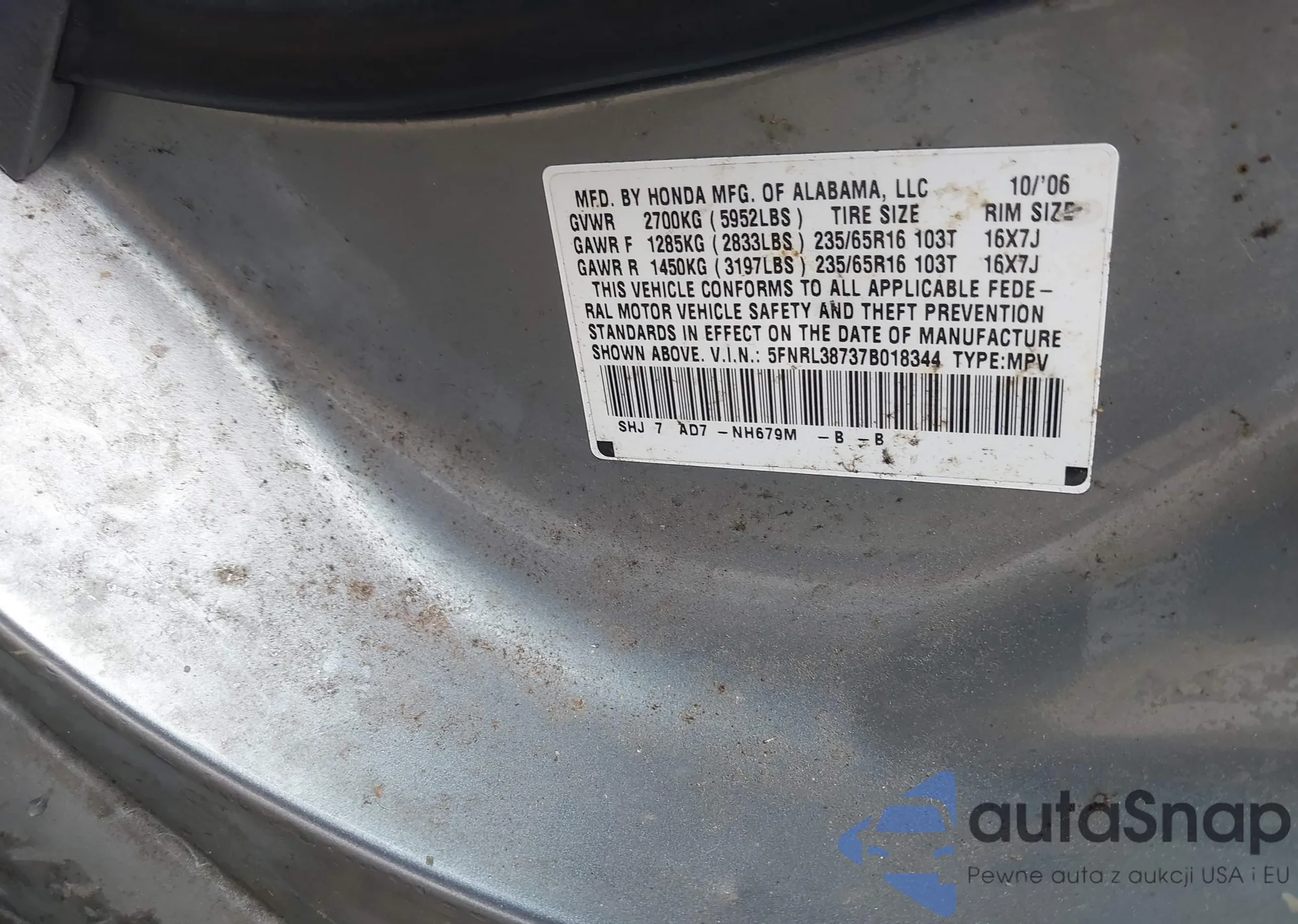 VIN: 5FNRL38737B018344