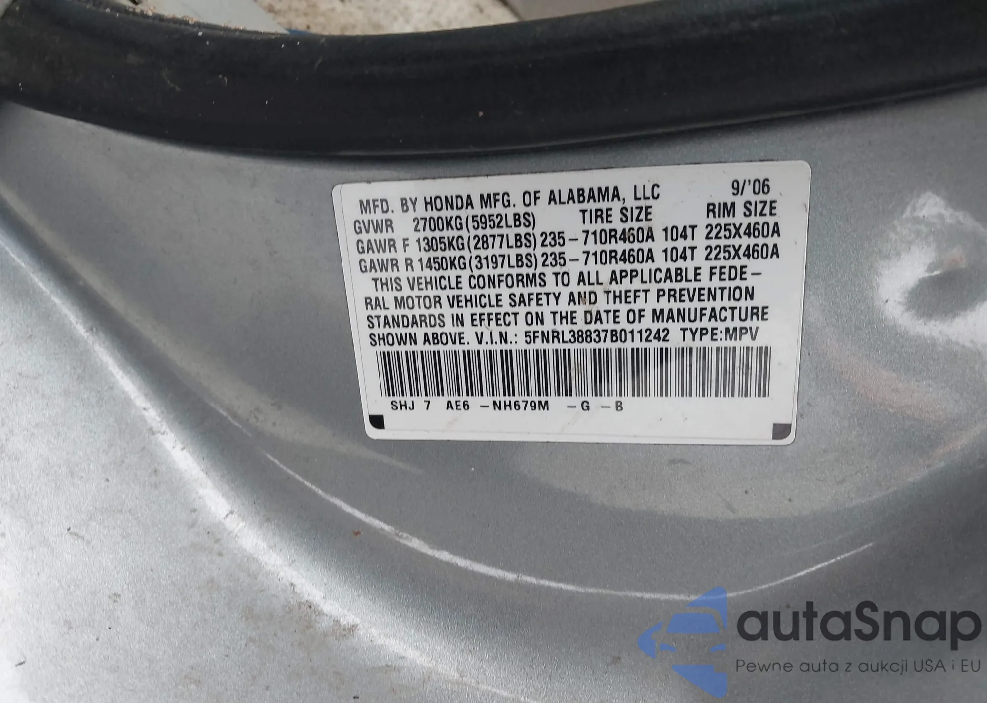 VIN: 5FNRL38837B011242