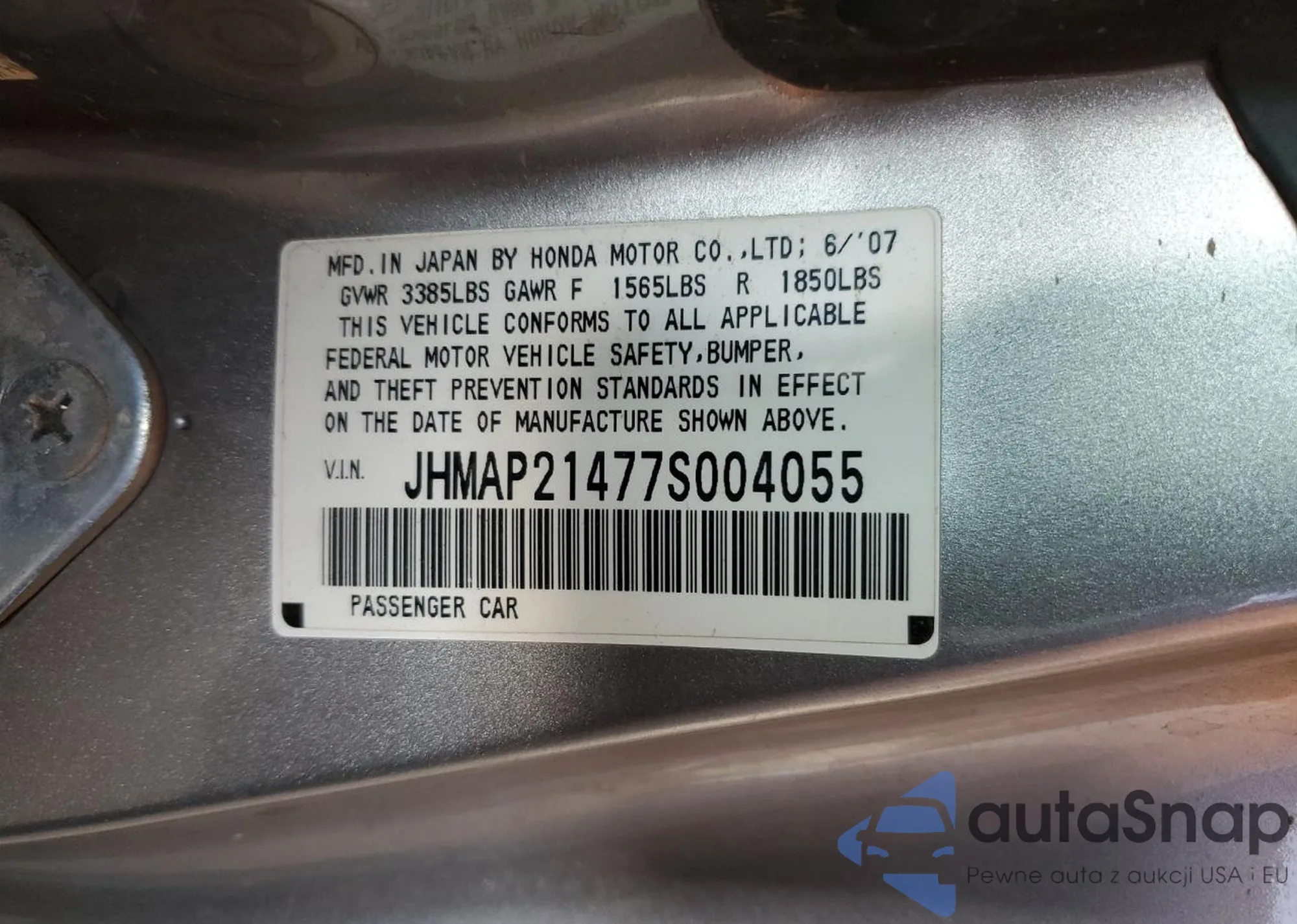 VIN: JHMAP21477S004055