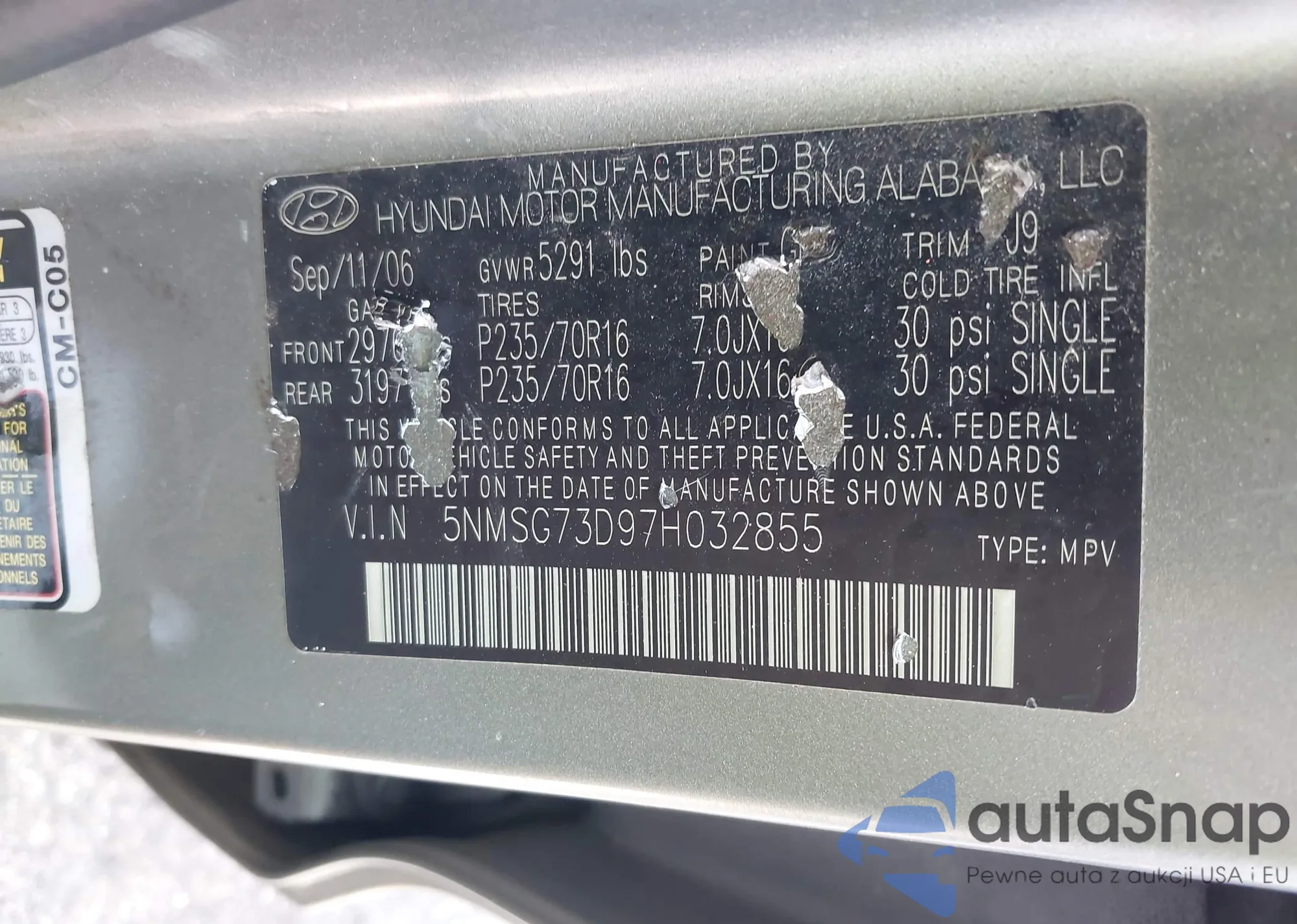 VIN: 5NMSG73D97H032855