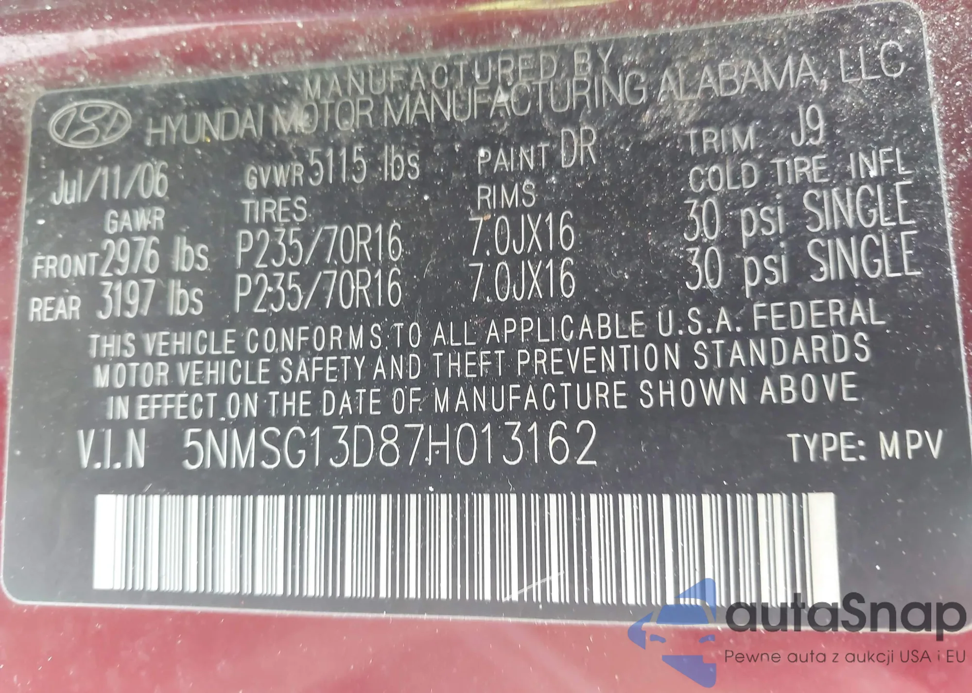 VIN: 5NMSG13D87H013162