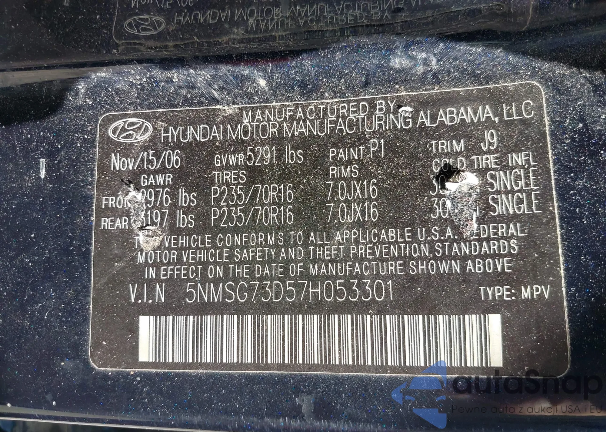 VIN: 5NMSG73D57H053301