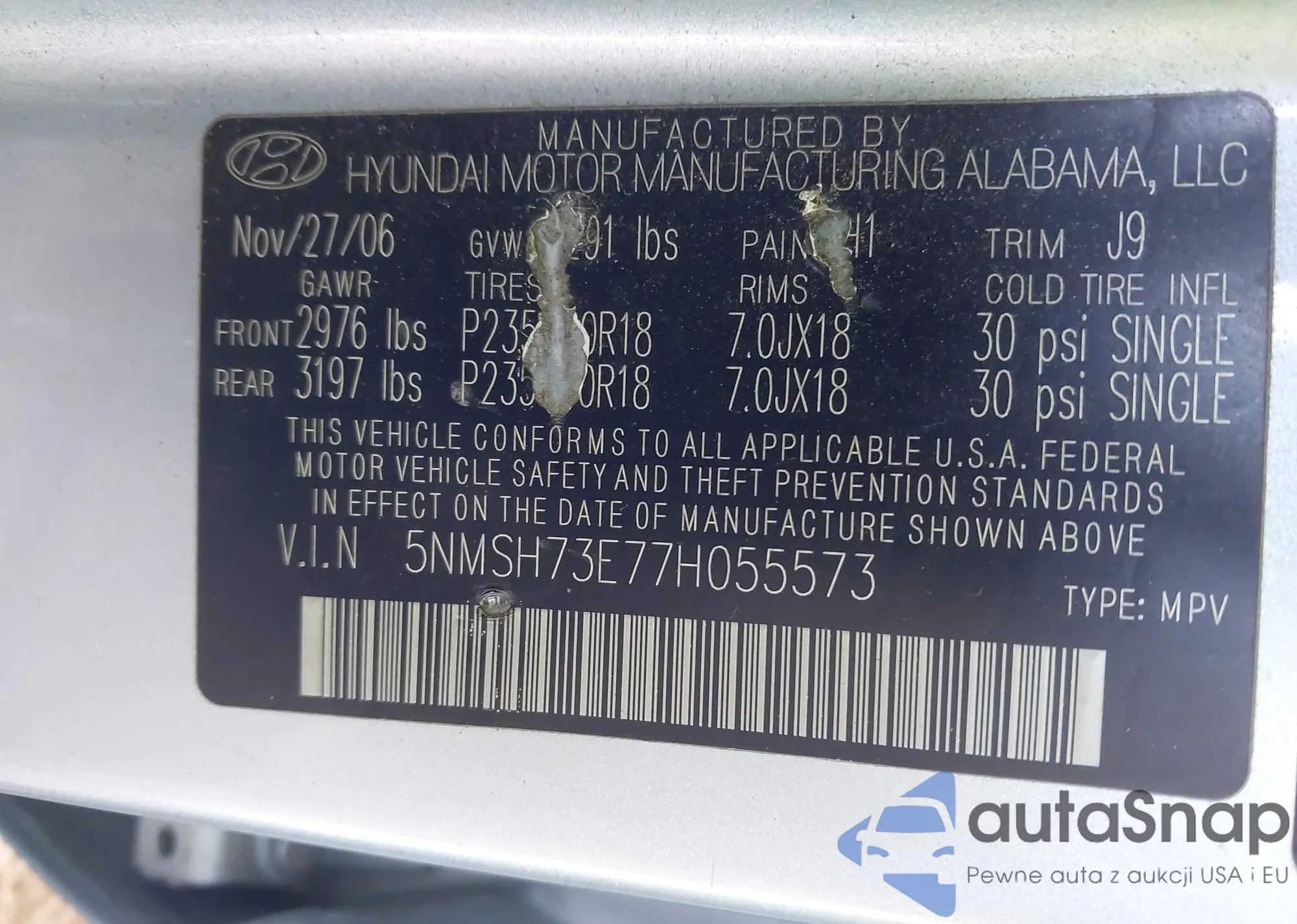 VIN: 5NMSH73E77H055573